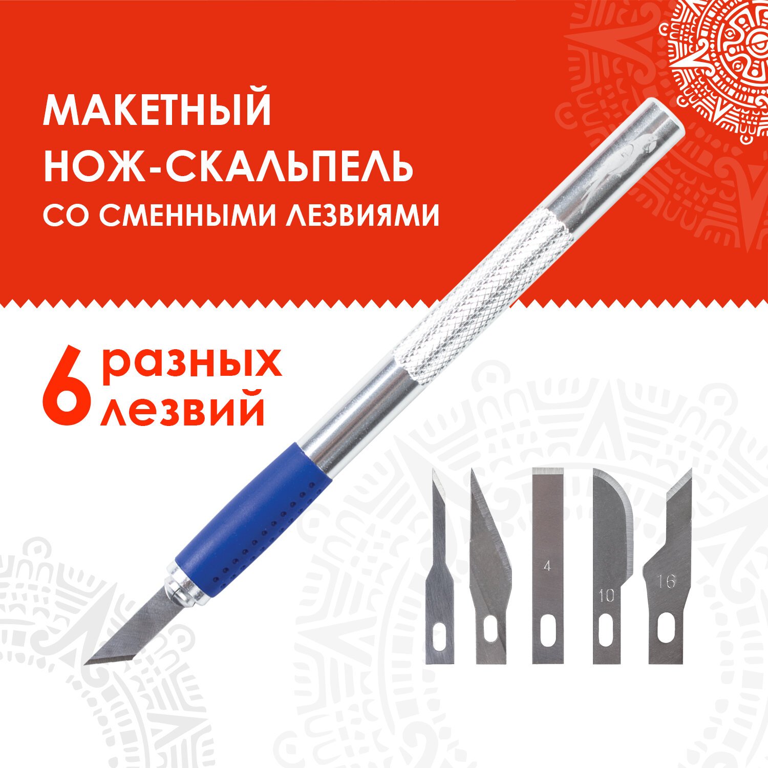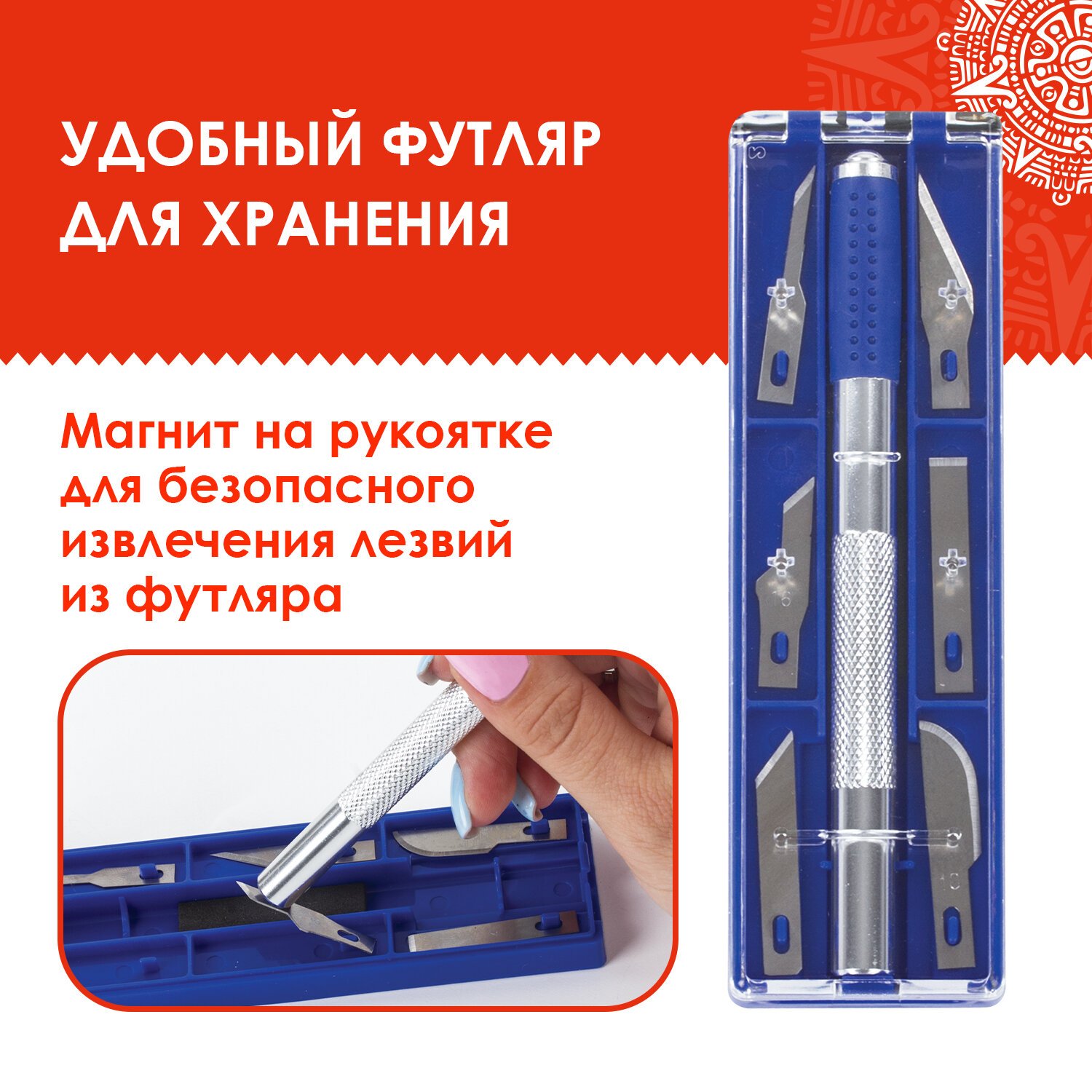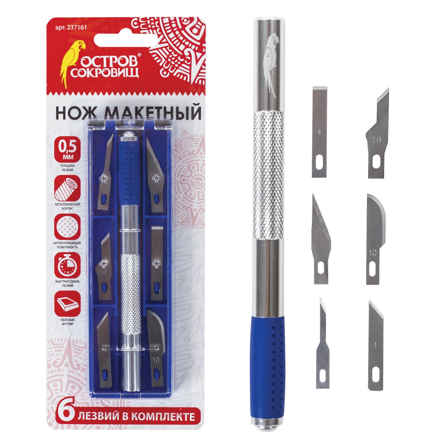 Нож макетный ОСТРОВ СОКРОВИЩ, 6 разновидностей лезвий, металл, пластиковый футляр, 237161