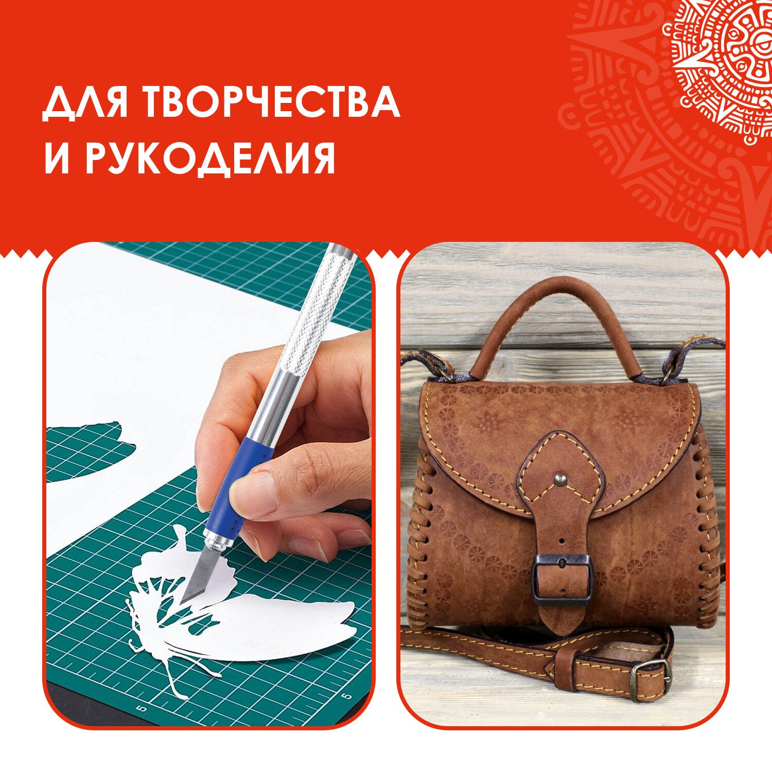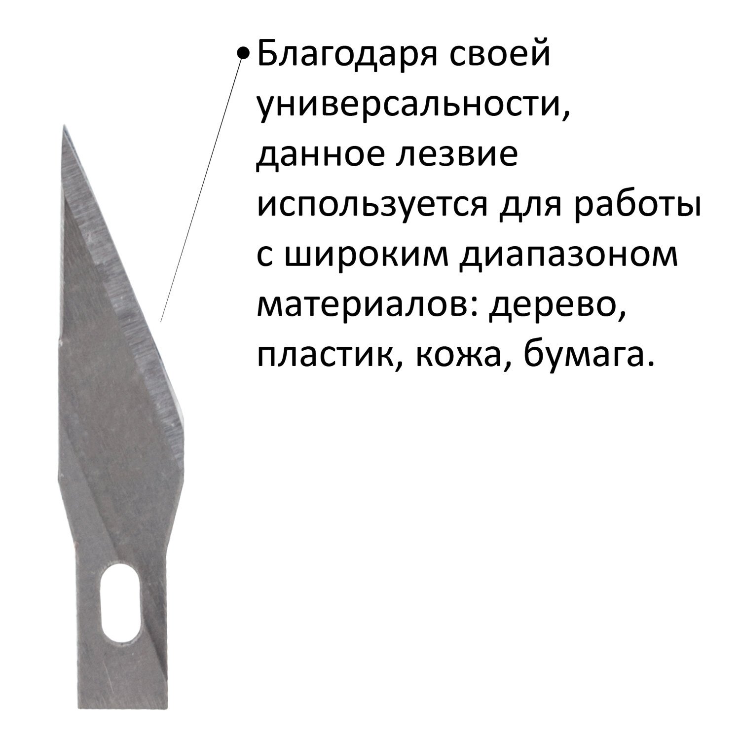 4. Универсальное лезвие для работы с широким диапазоном материалов: дерево, пластик, кожа, бумага.