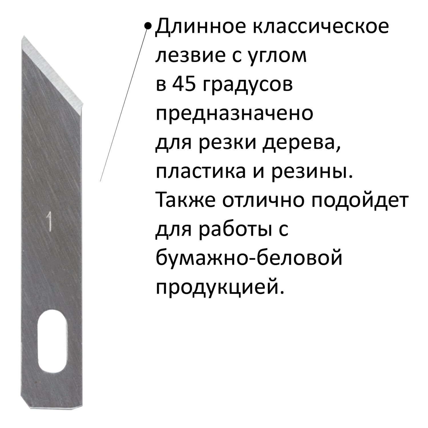 3. Длинное классическое лезвие с углом в 45 градусов предназначено для резки дерева, пластика и резины. Так же отлично подойдет для работы с бумажно-беловой продукцией.
