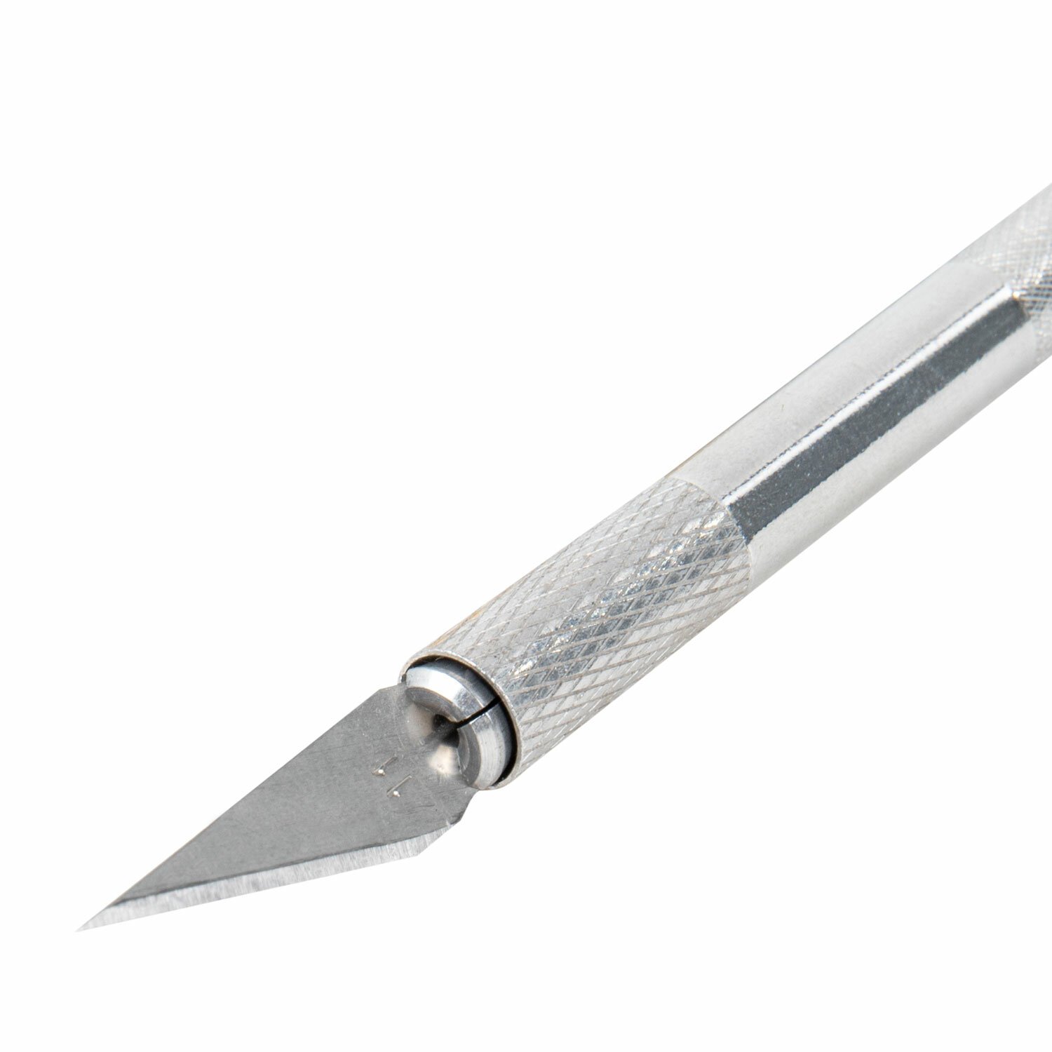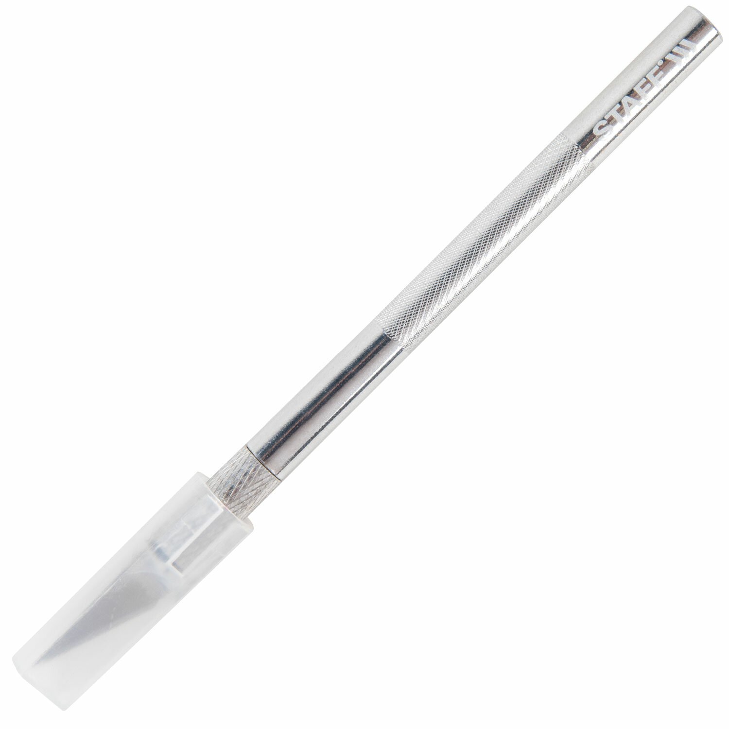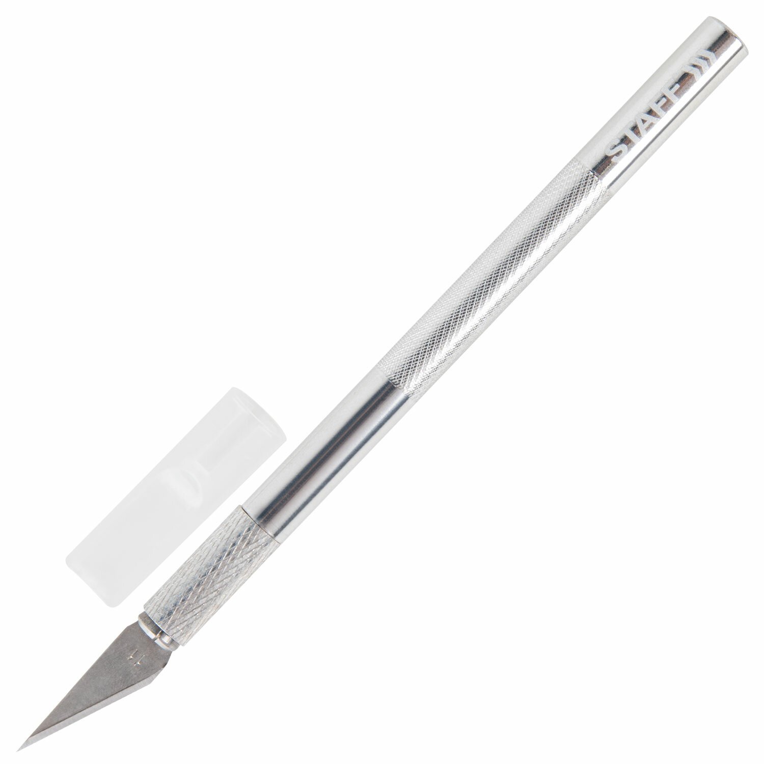 Нож макетный (скальпель) STAFF, 11 лезвий в комплекте, металлический корпус, блистер, 238257