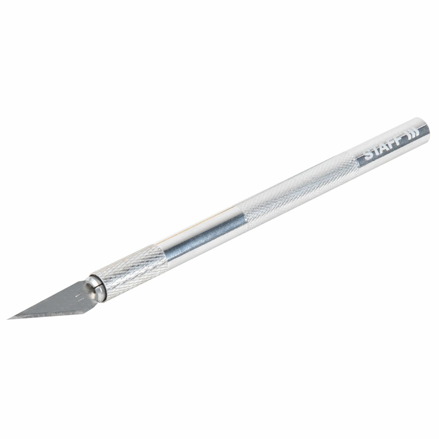 Нож макетный (скальпель) STAFF, 6 лезвий в комплекте, металлический корпус, блистер, 238258