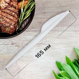 Для изготовления одноразовых ножей использован высококачественный пищевой экологически чистый полистирол. Изделия являются легкими и нетравмоопасными. При контакте с едой и напитками не выделяют вредных компонентов. Могут использоваться с горячей пищей температурой (до +70°С). Длина — 16,5 см. В упаковке 100 штук.