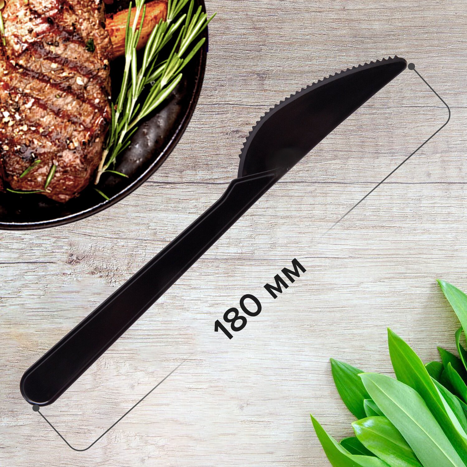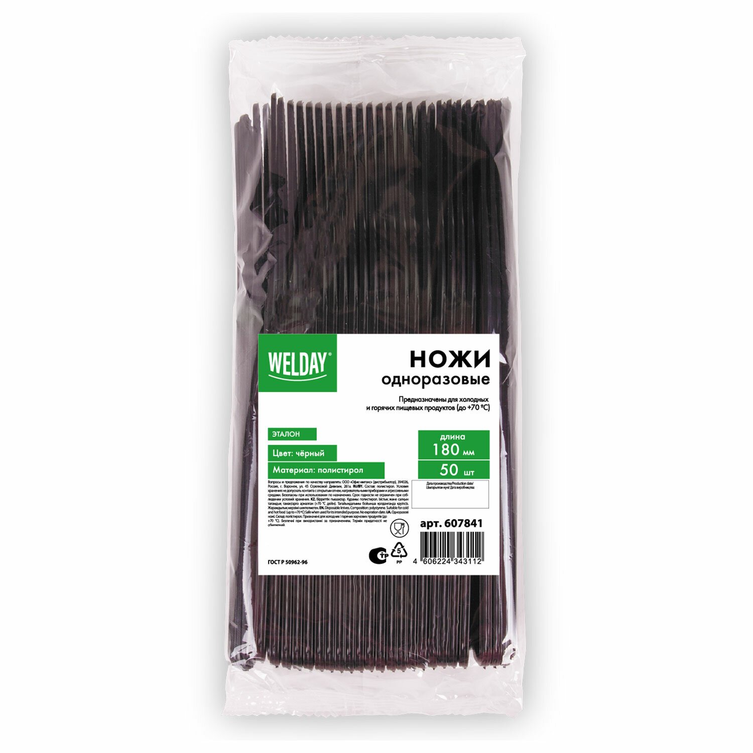 Нож одноразовый полипропиленовый 173 мм черный, КОМПЛЕКТ 50 шт., ПРЕМИУМ, WELDAY, 881104