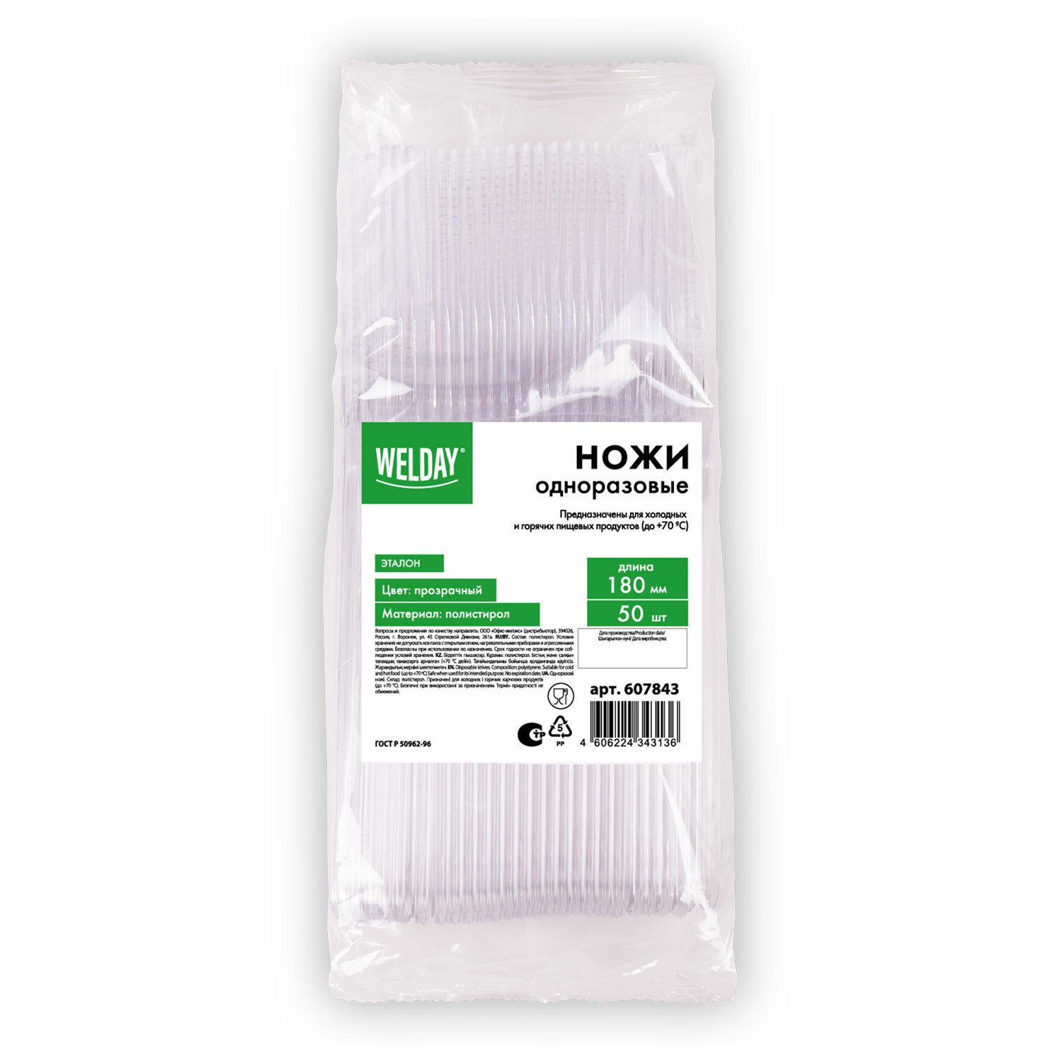 Нож одноразовый пластиковый 180 мм, прозрачный, КОМПЛЕКТ 50 шт., ЭТАЛОН, WELDAY, 607843