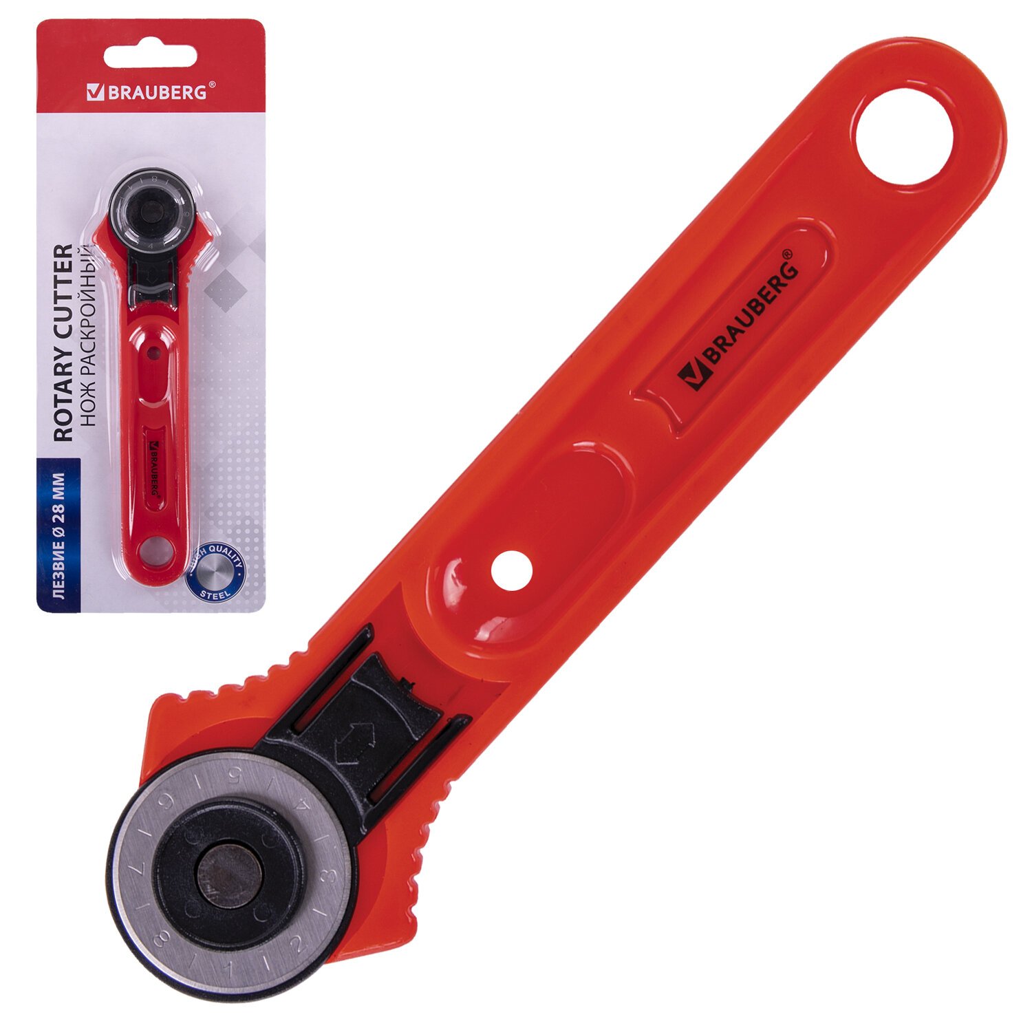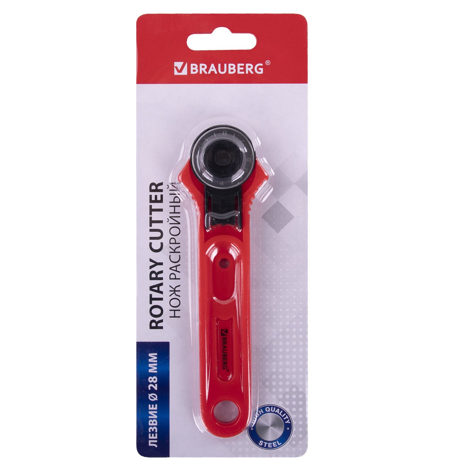 Нож раскройный роликовый 28 мм BRAUBERG, круглое лезвие, 238090