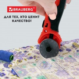 Роликовый нож BRAUBERG подходит для быстрого, точного и качественного разрезания всех видов ткани, кожи, замши, бумаги и прочих материалов.