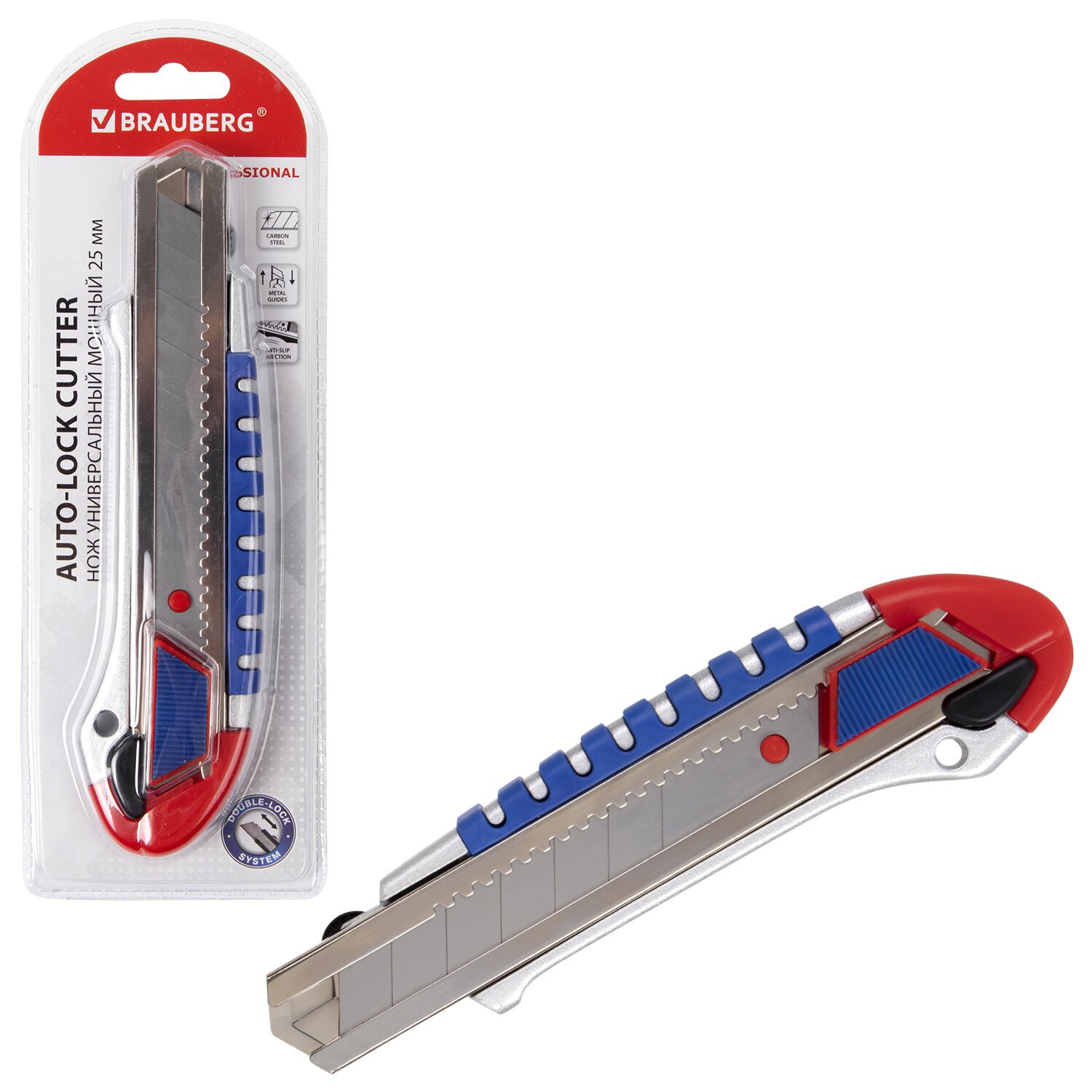 Нож универсальный мощный 25 мм BRAUBERG "Professional", металлический корпус, 237448