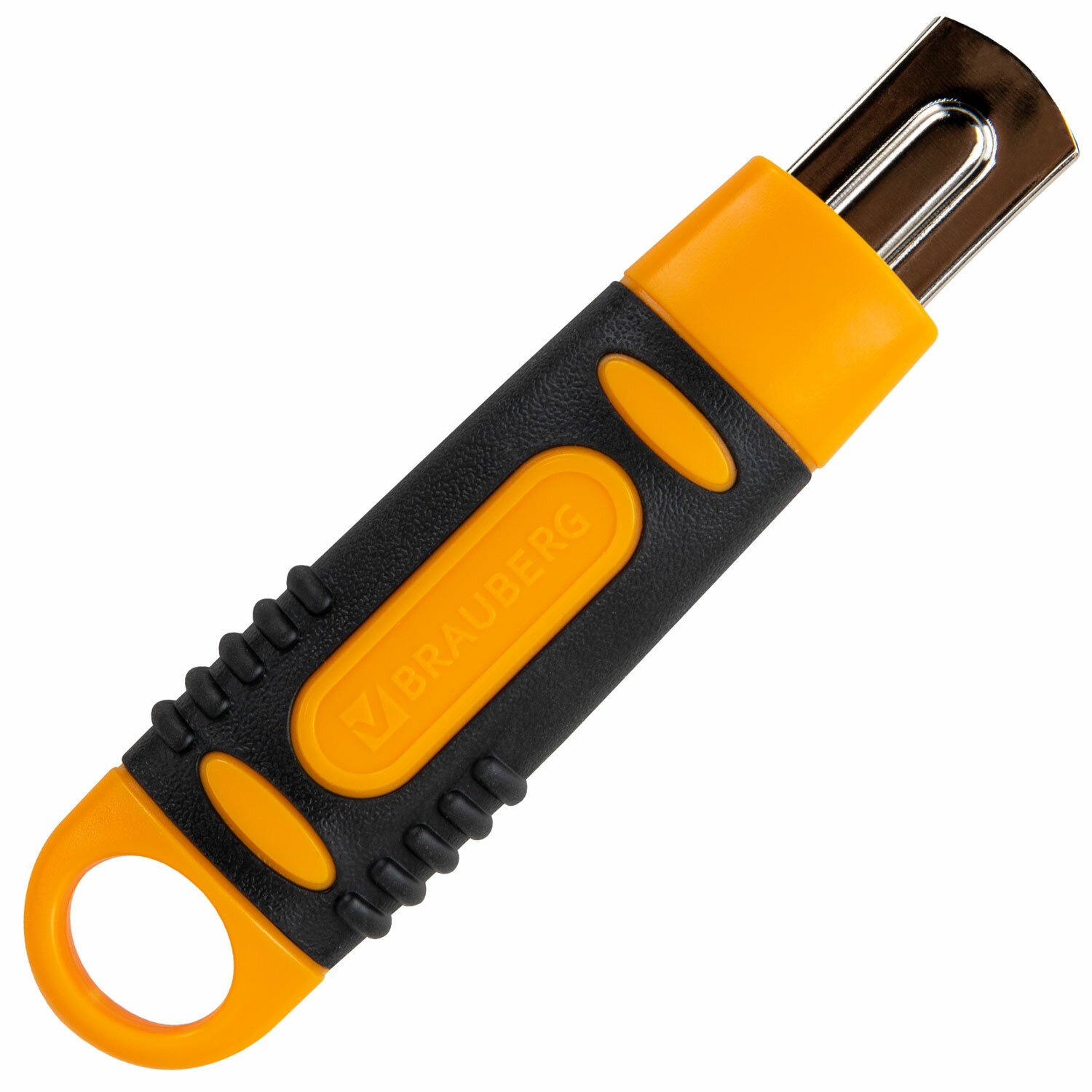 Нож универсальный мощный алюминиевый BRAUBERG "Heavy duty M", автофиксатор, резиновые вставки, 238736