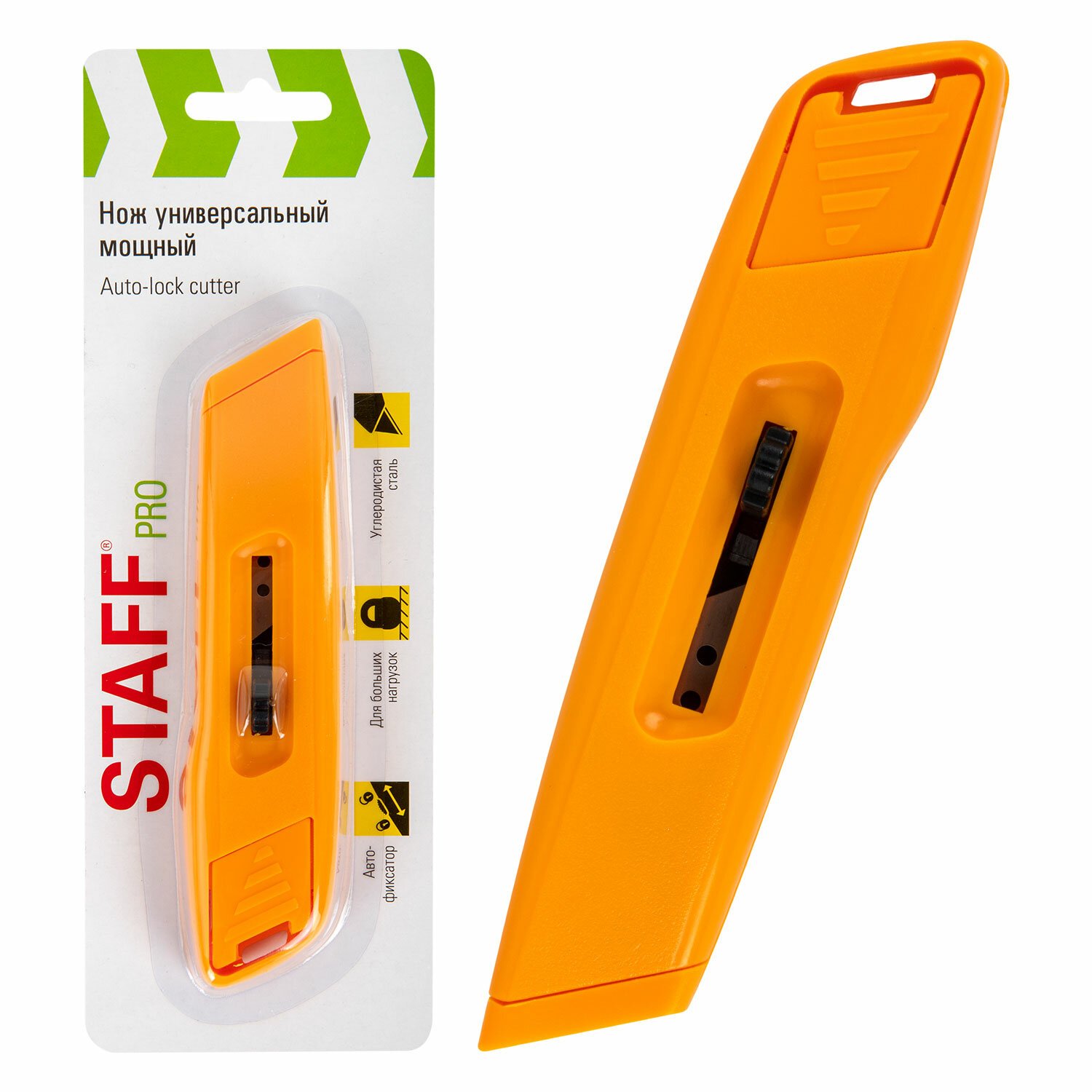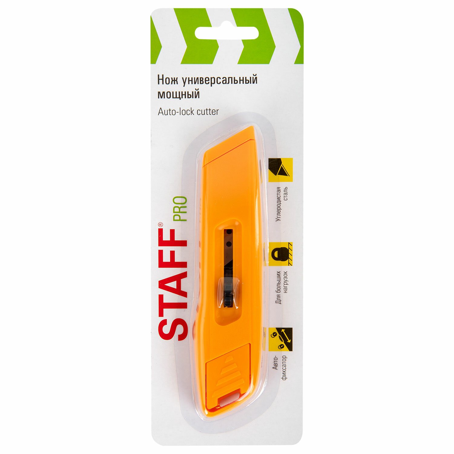 Нож универсальный мощный STAFF PRO, автофиксатор, ABS-пластик, 238734