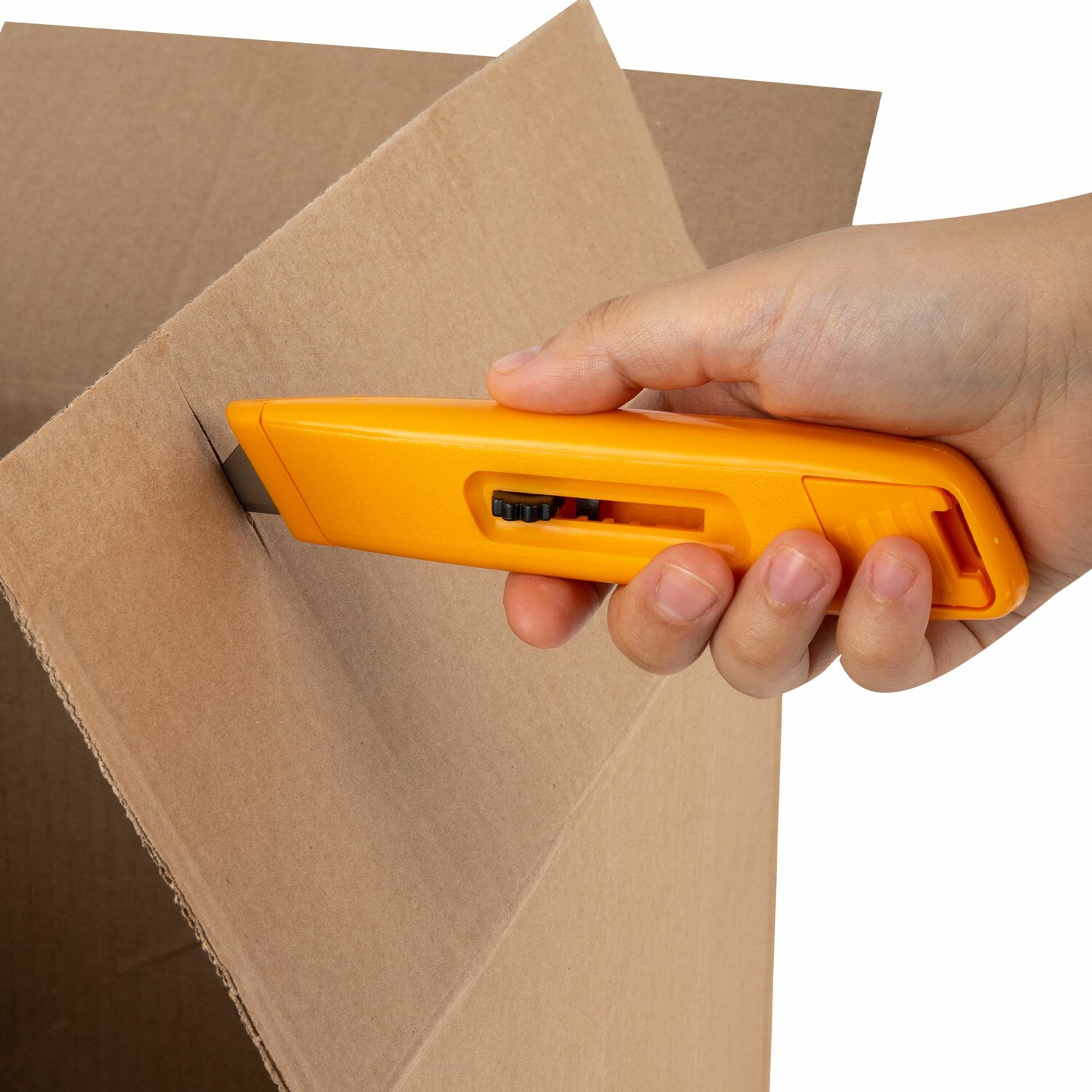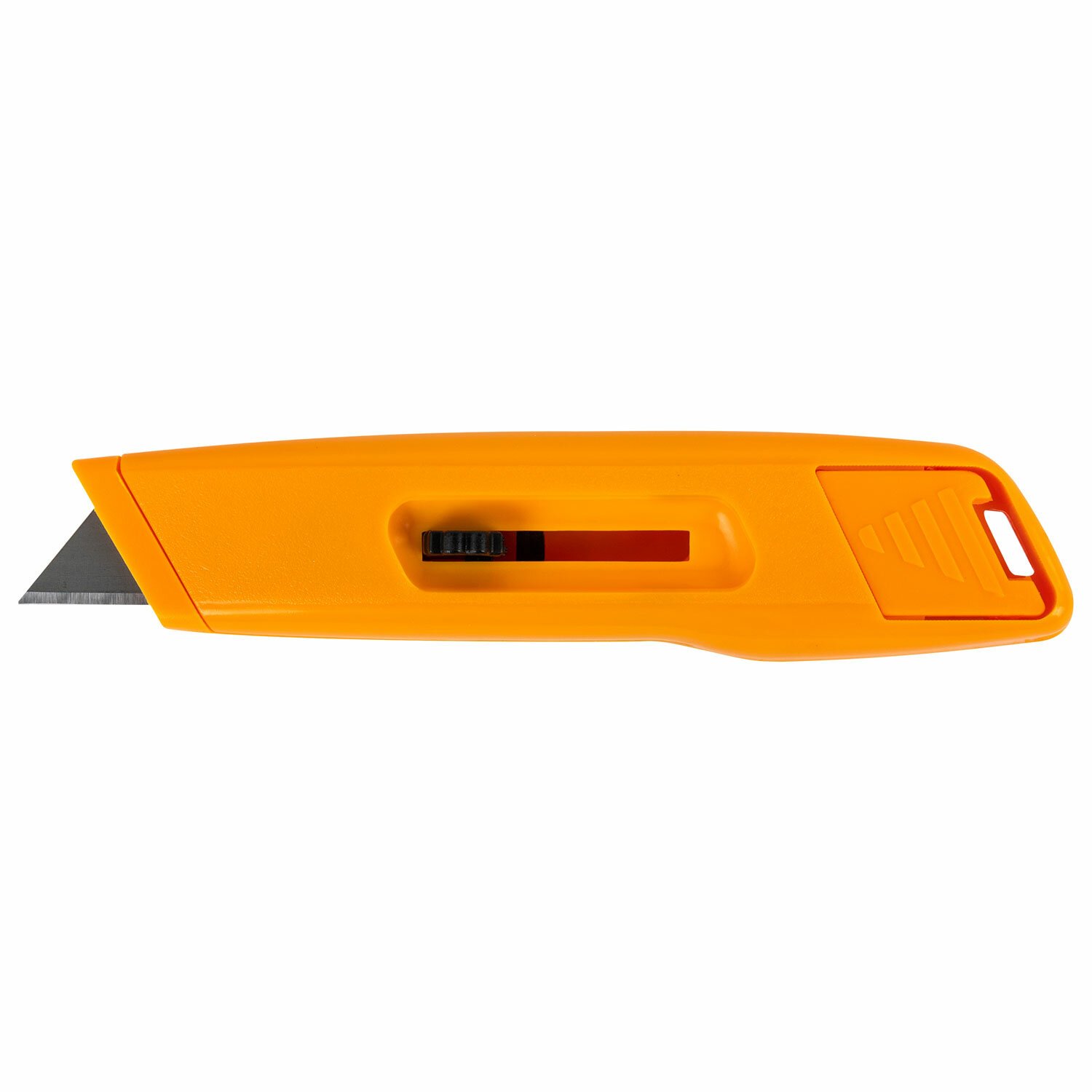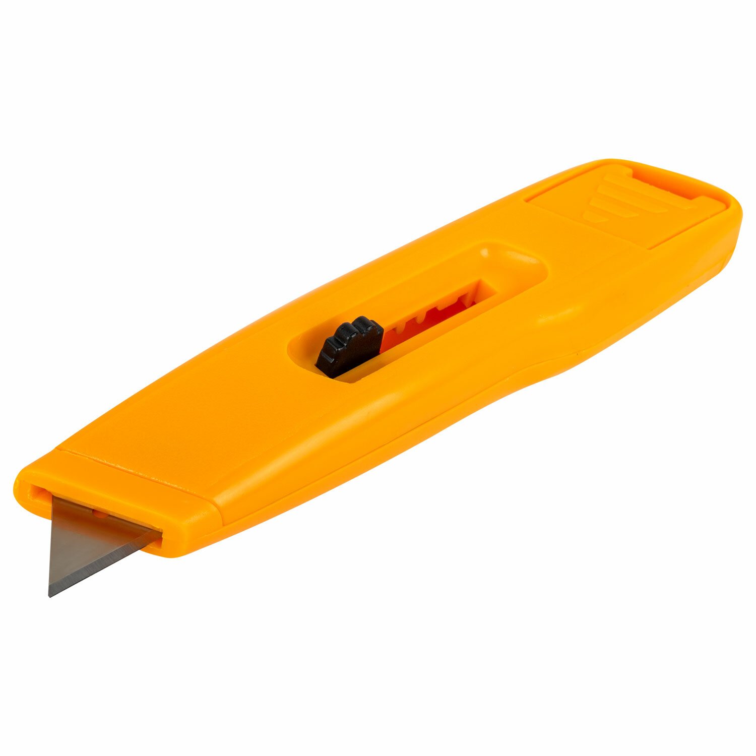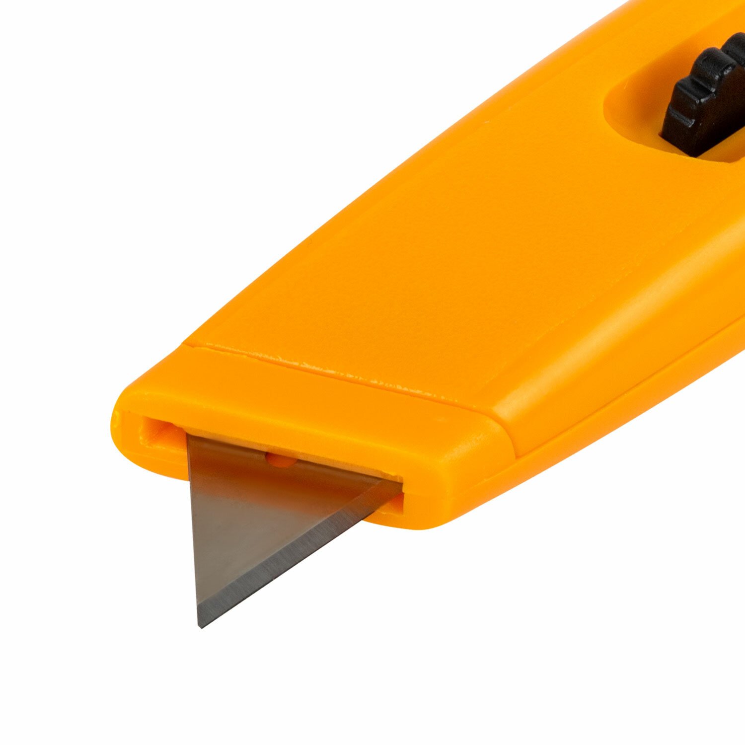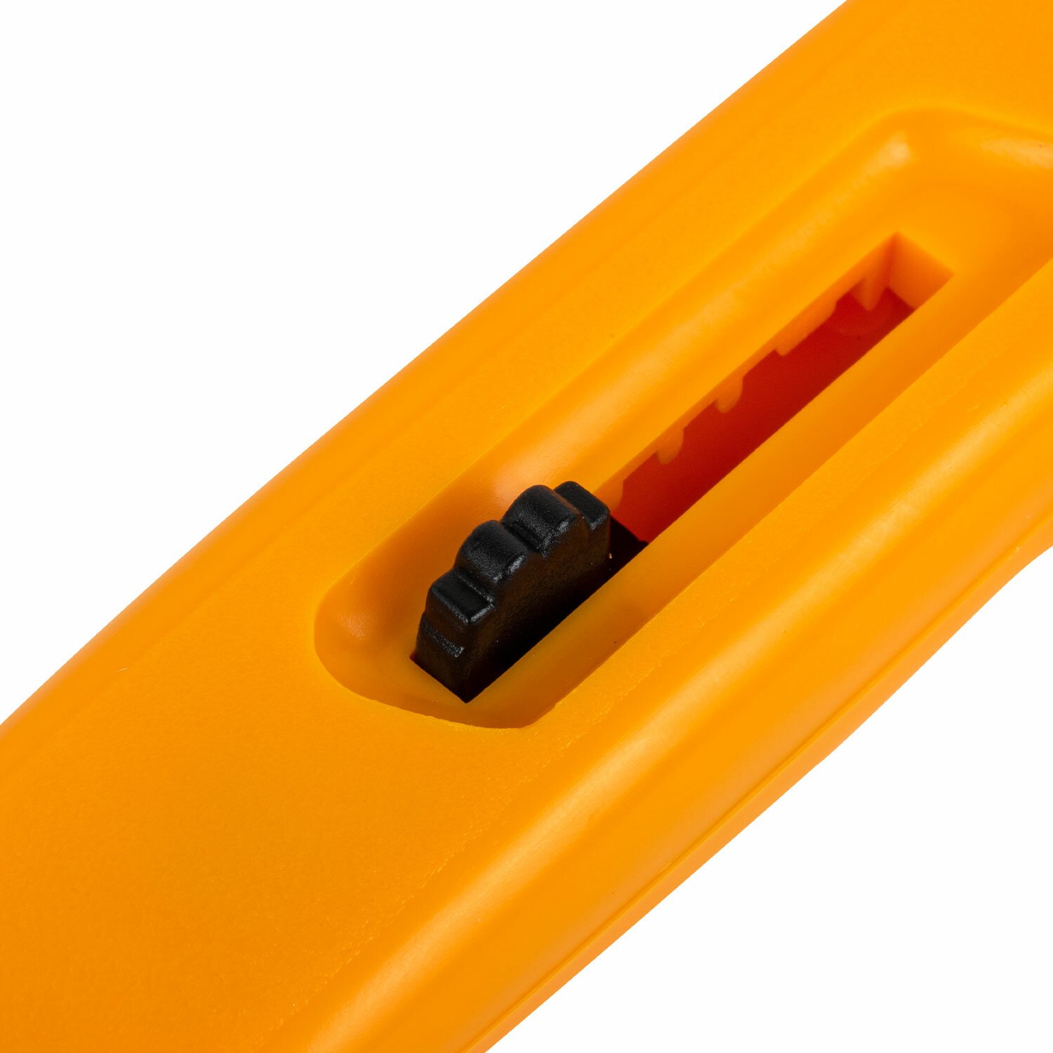 Трапециевидное лезвие шириной 18 мм позволяет использовать его для резки более плотных и тонких материалов. Нож снабжен автофиксатором. Может использоваться при отделочных работах или в домашнем хозяйстве при разрезании толстого и плотного гипсокартона или вязких ковровых покрытий. Затупившееся лезвие можно поменять, тем самым вернув ножу былую остроту.
