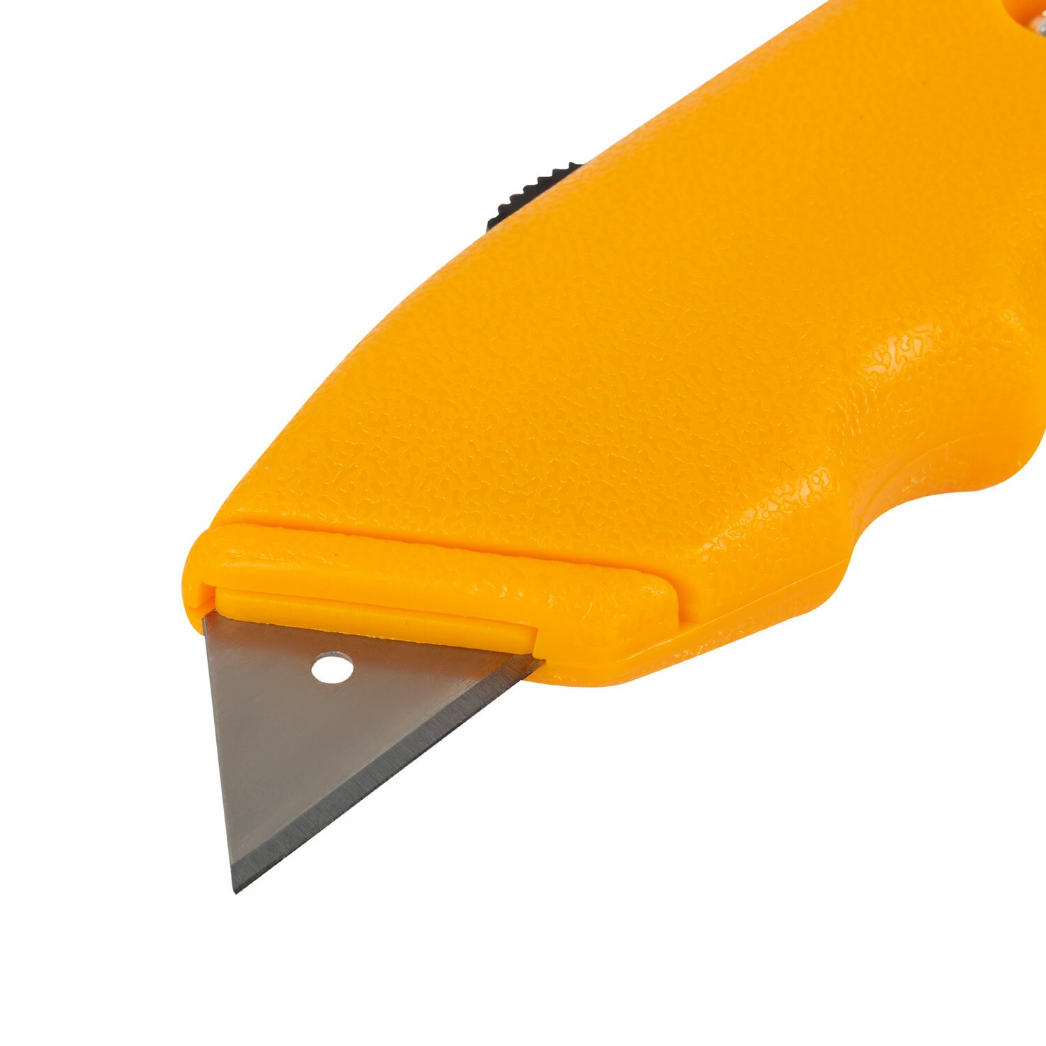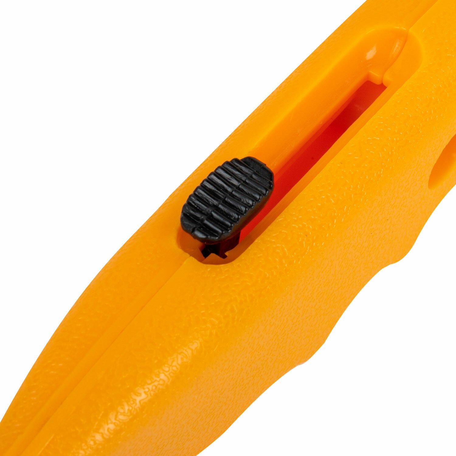 Трапециевидное лезвие шириной 18 мм позволяет использовать его для резки более плотных и тонких материалов. Нож снабжен автофиксатором. Может использоваться при отделочных работах или в домашнем хозяйстве при разрезании толстого и плотного гипсокартона или вязких ковровых покрытий. Затупившееся лезвие можно поменять, тем самым вернув ножу былую остроту.