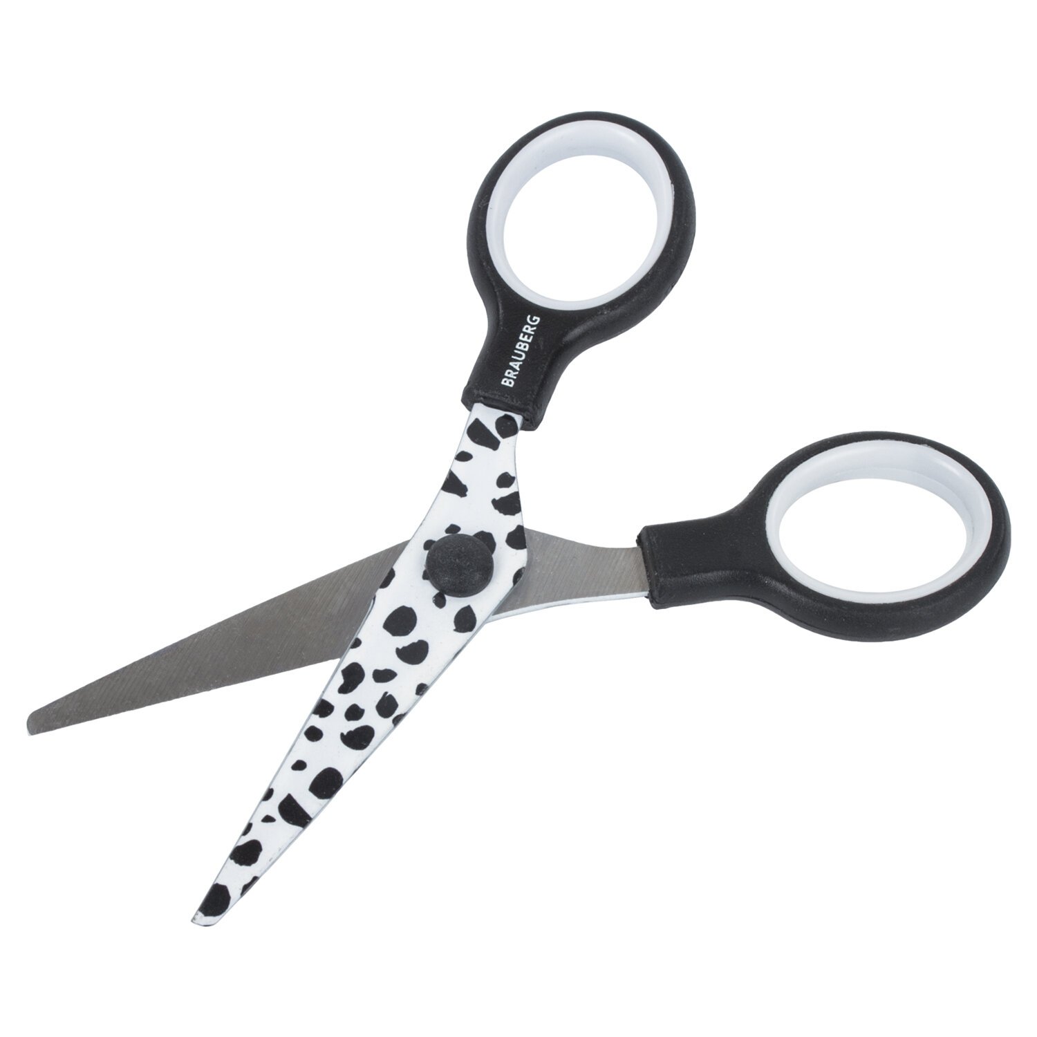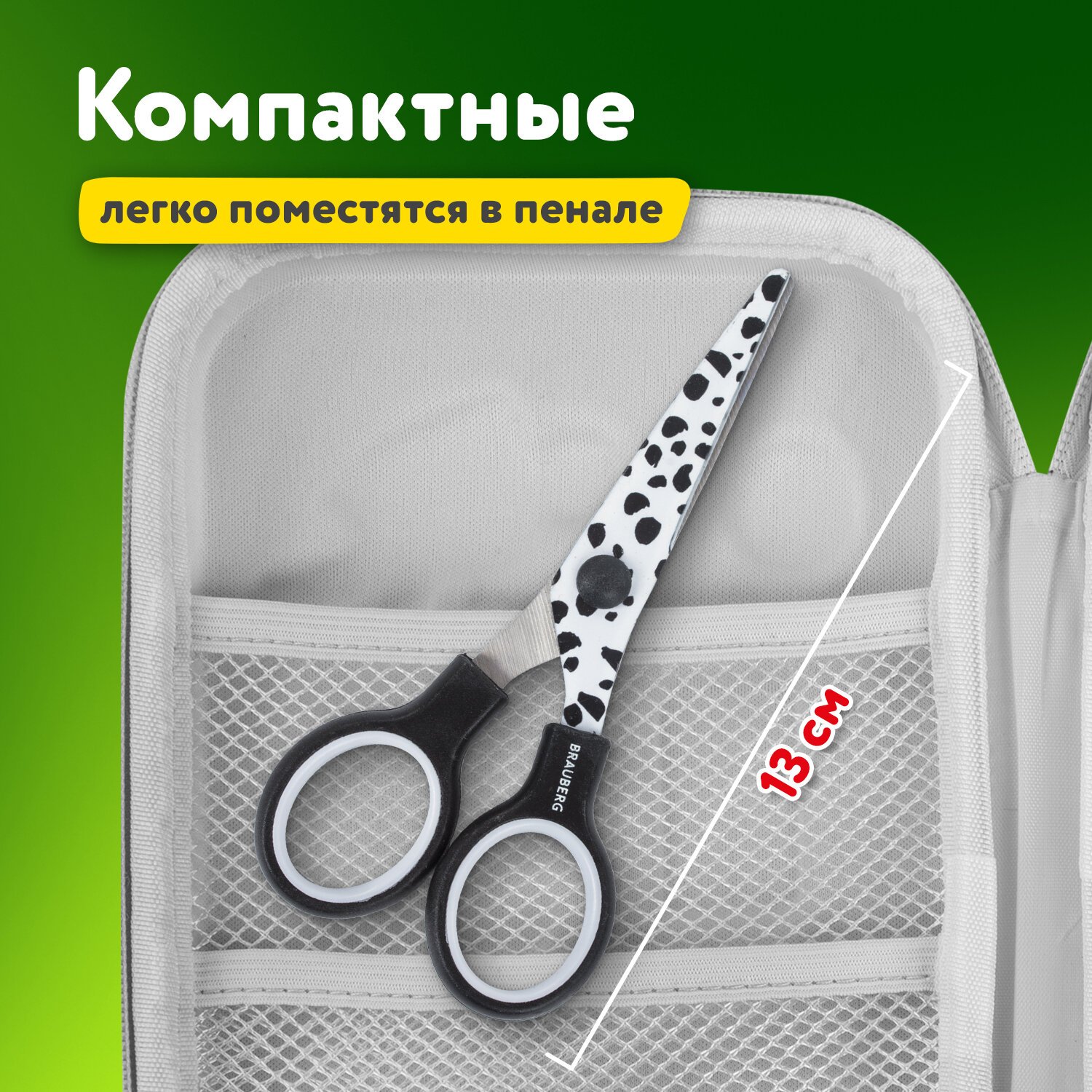 Ножницы 130 мм с цветной печатью "Далматин", чёрно-белые, закругленные, BRAUBERG KIDS, 232276
