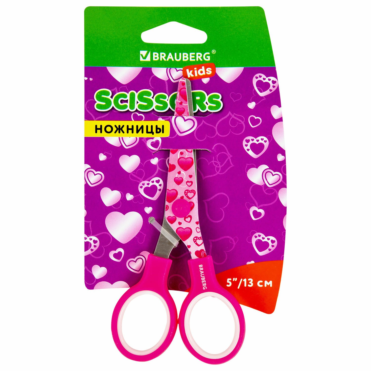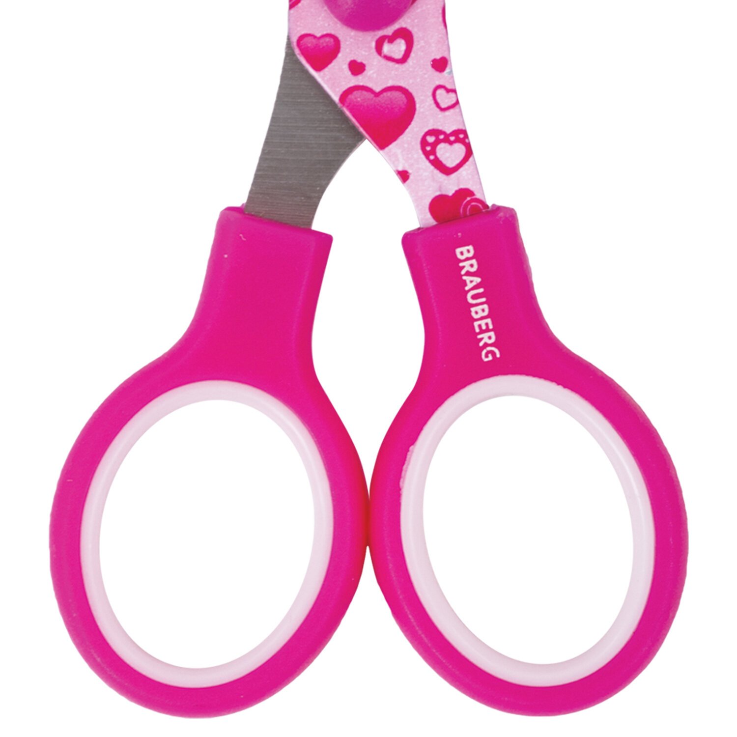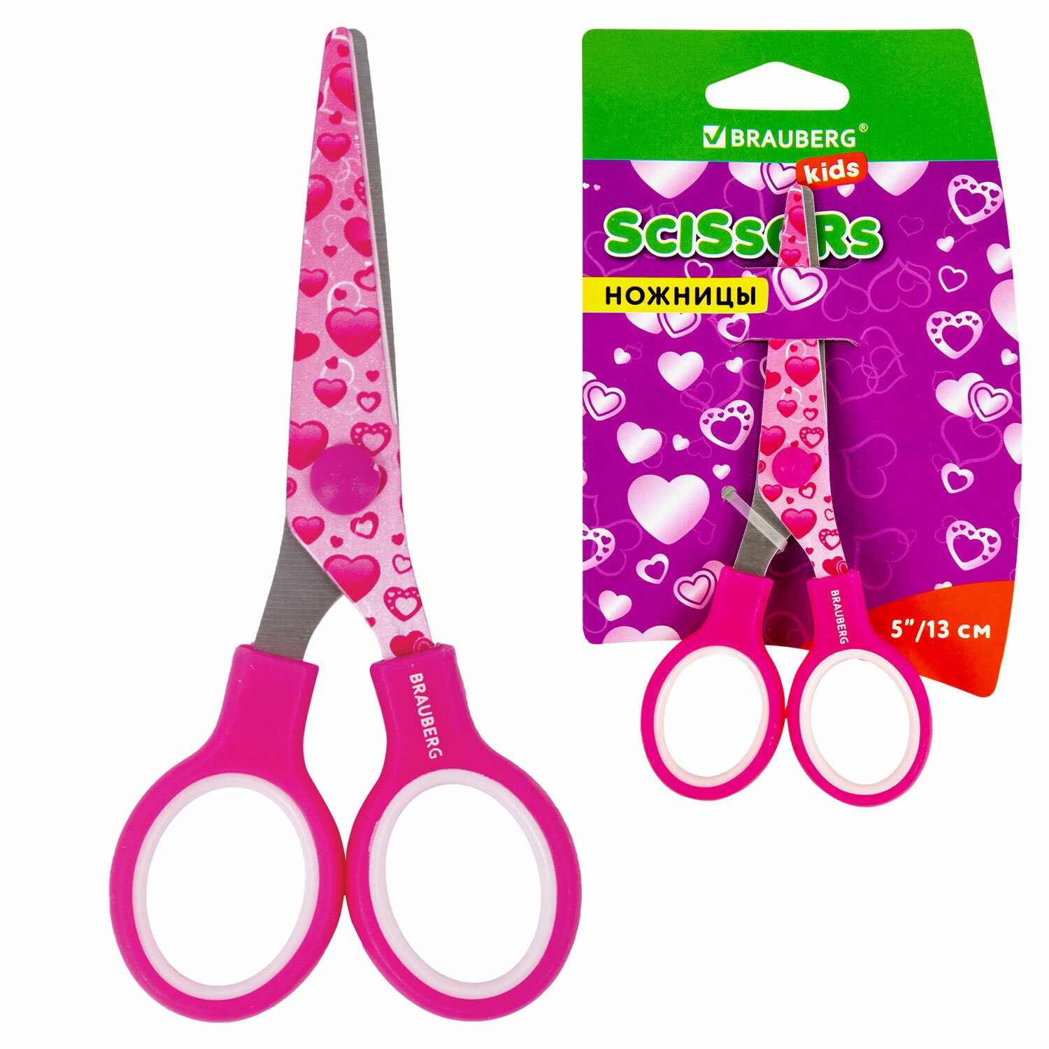 Ножницы 130 мм с цветной печатью "Сердечки", малиновые, закругленные, BRAUBERG KIDS, 232275