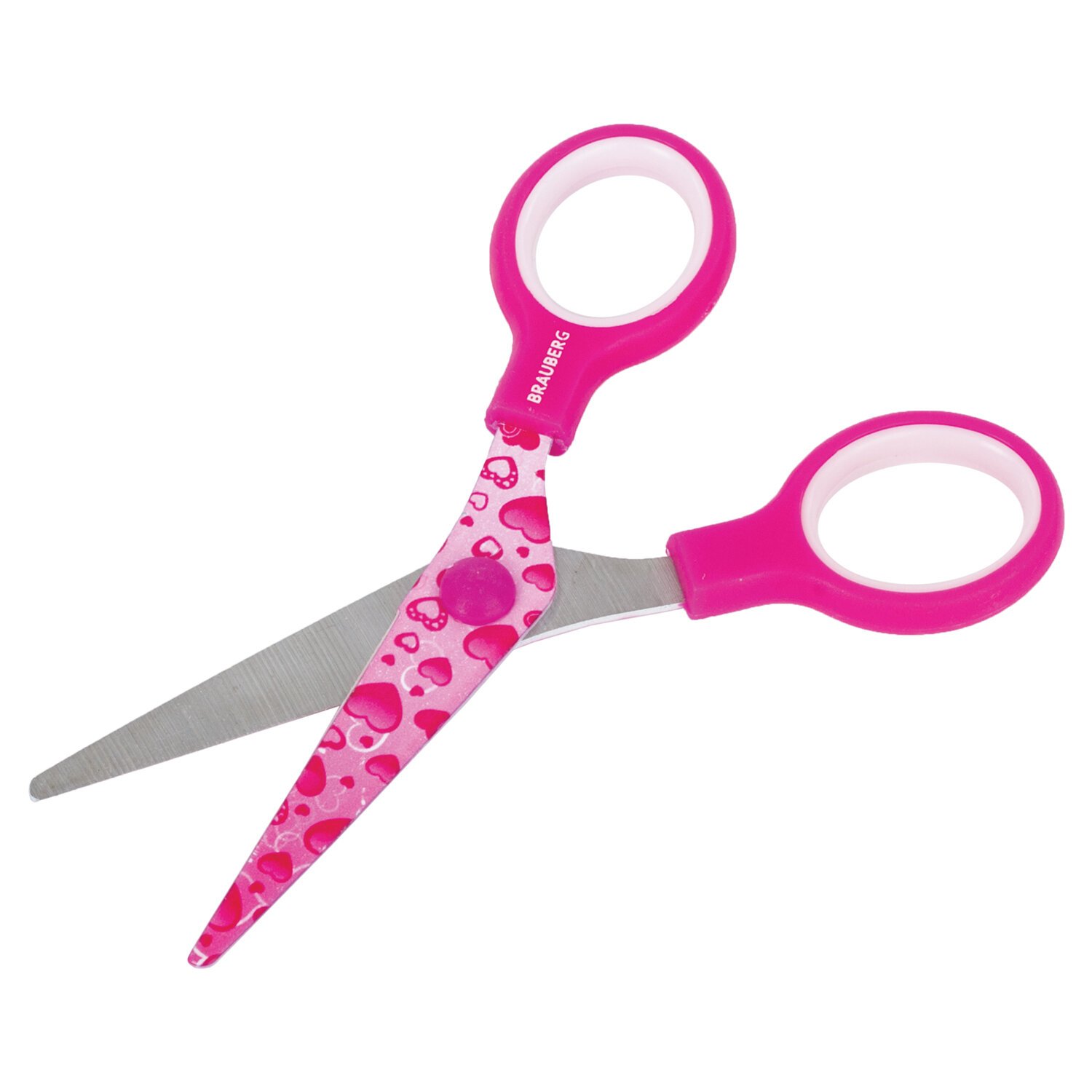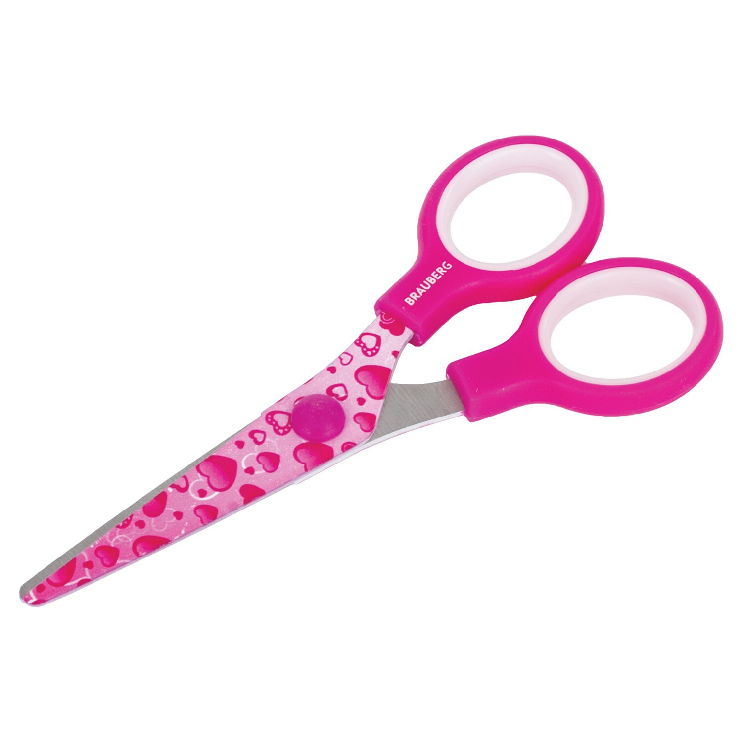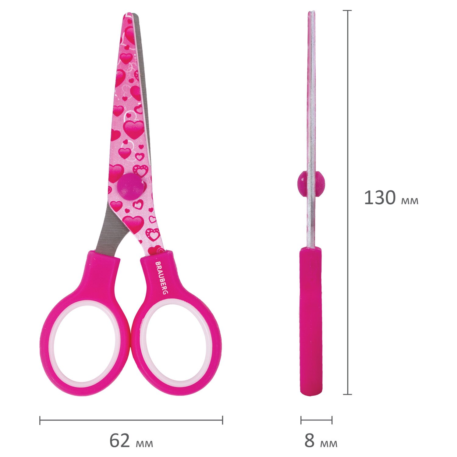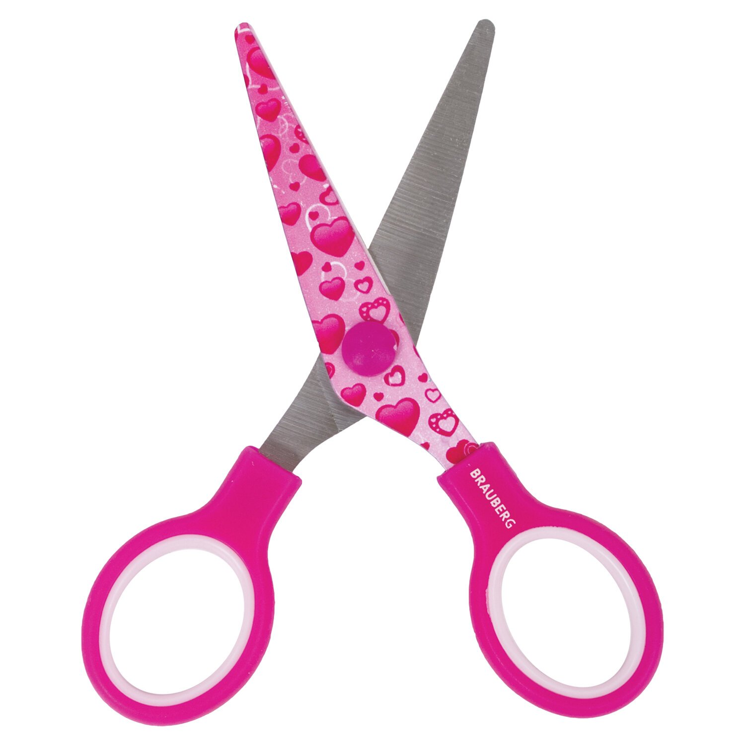 Ножницы 130 мм с цветной печатью "Сердечки", малиновые, закругленные, BRAUBERG KIDS, 232275
