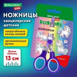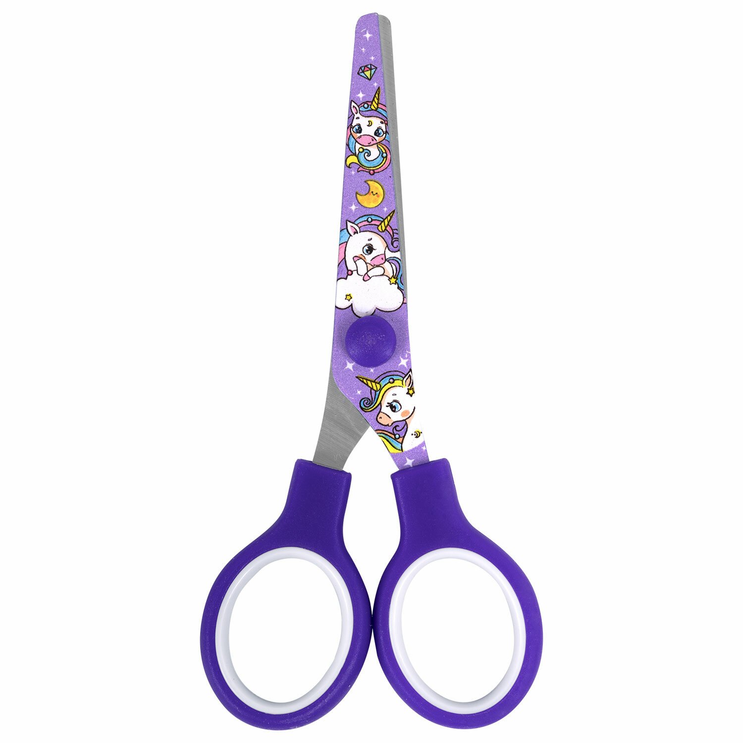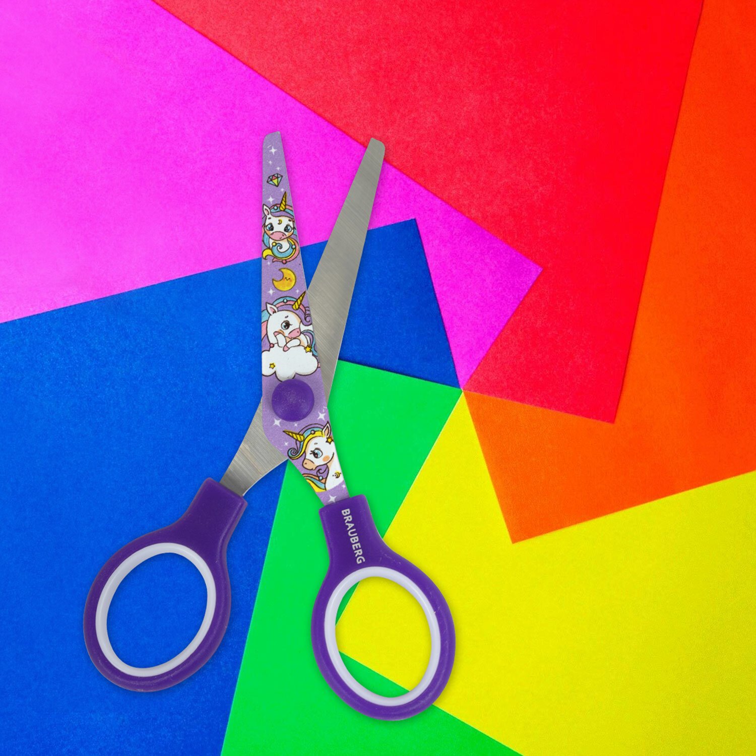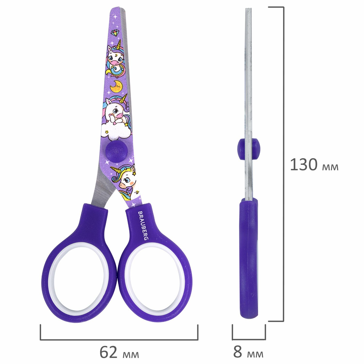 Ножницы 130 мм сиреневые, с цветной печатью "Единороги", закругленные, BRAUBERG KIDS, 238350