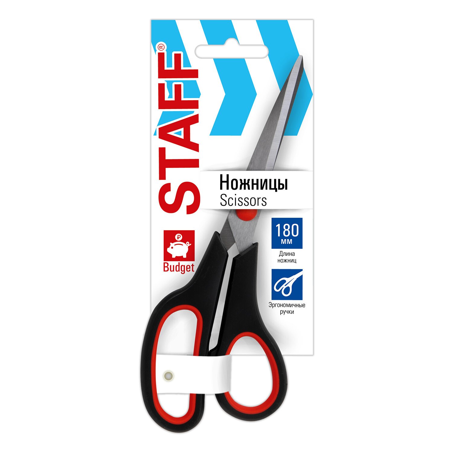 Ножницы 180 мм, бюджет, резиновые вставки, черно-красные, STAFF ECO, 238944