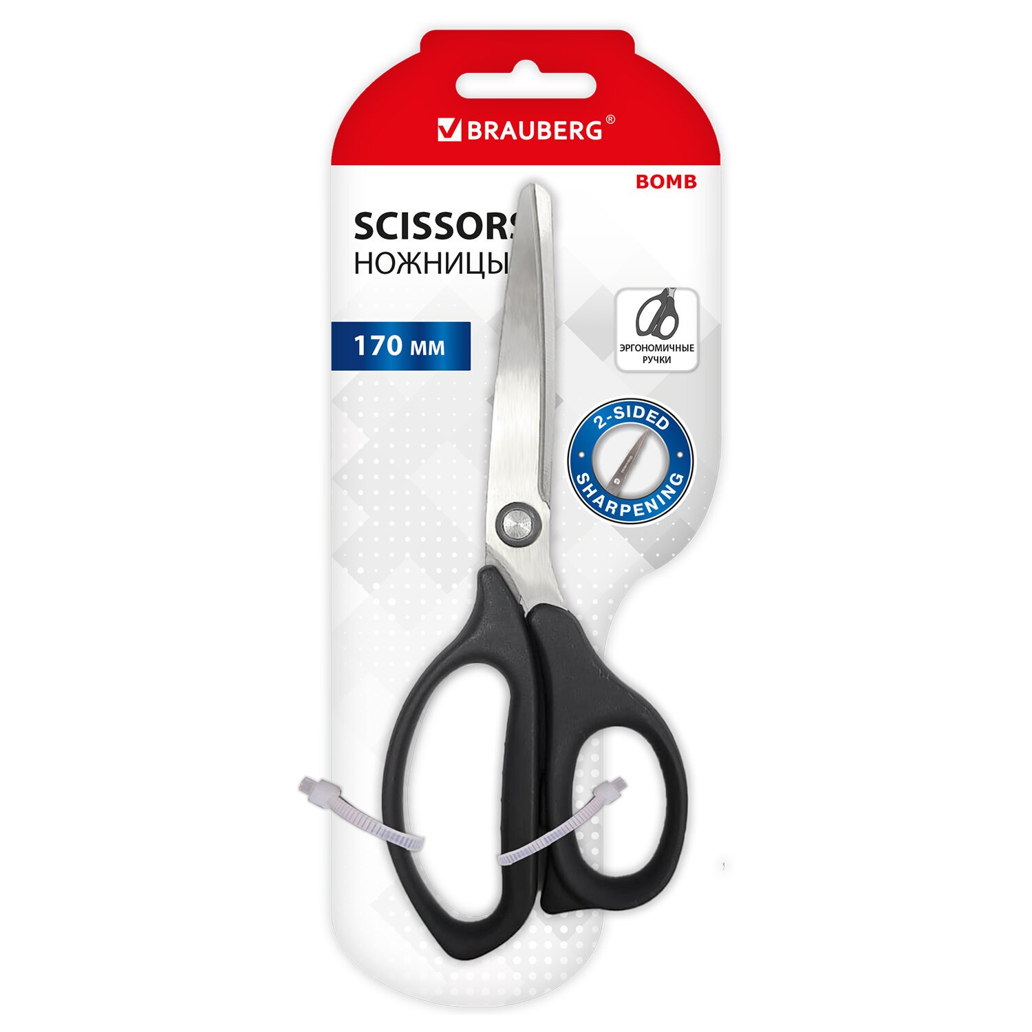 Ножницы BRAUBERG "BOMB", 170 мм, графитовый цвет, 2-х сторонняя заточка, эргономичные, 238857