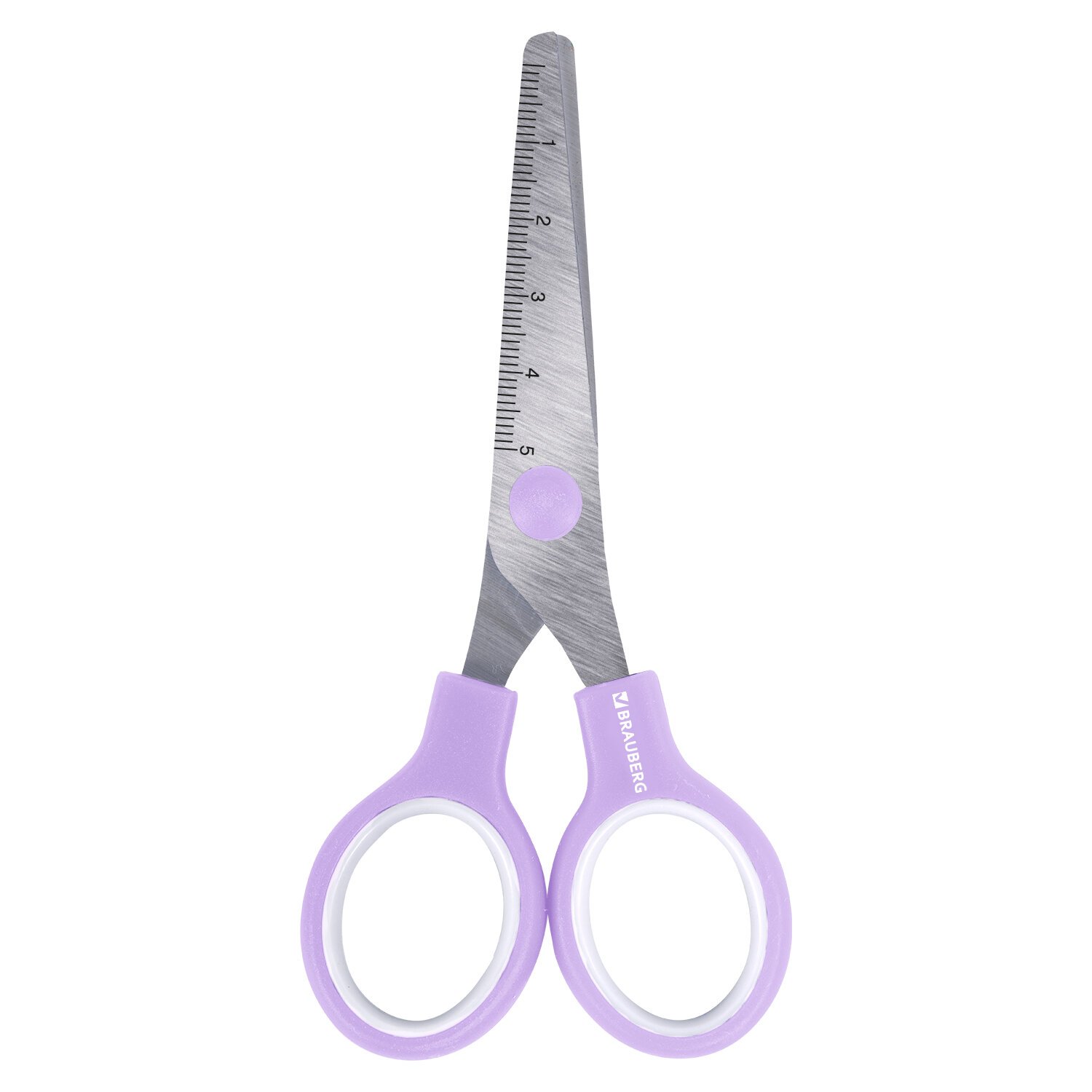 Ножницы BRAUBERG KIDS 130 мм, ручки лавандовые, закругленные лезвия с линейкой, 274061