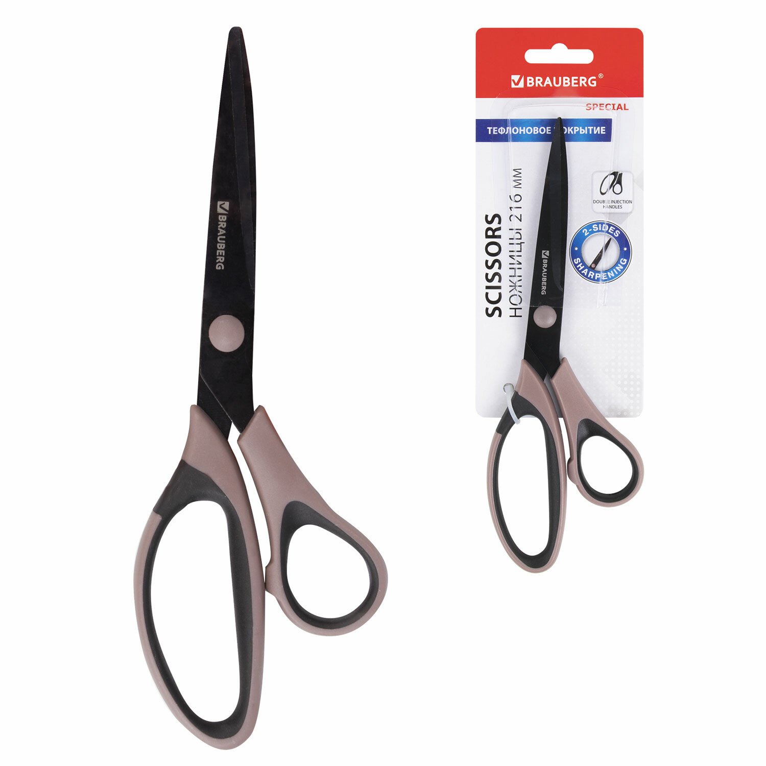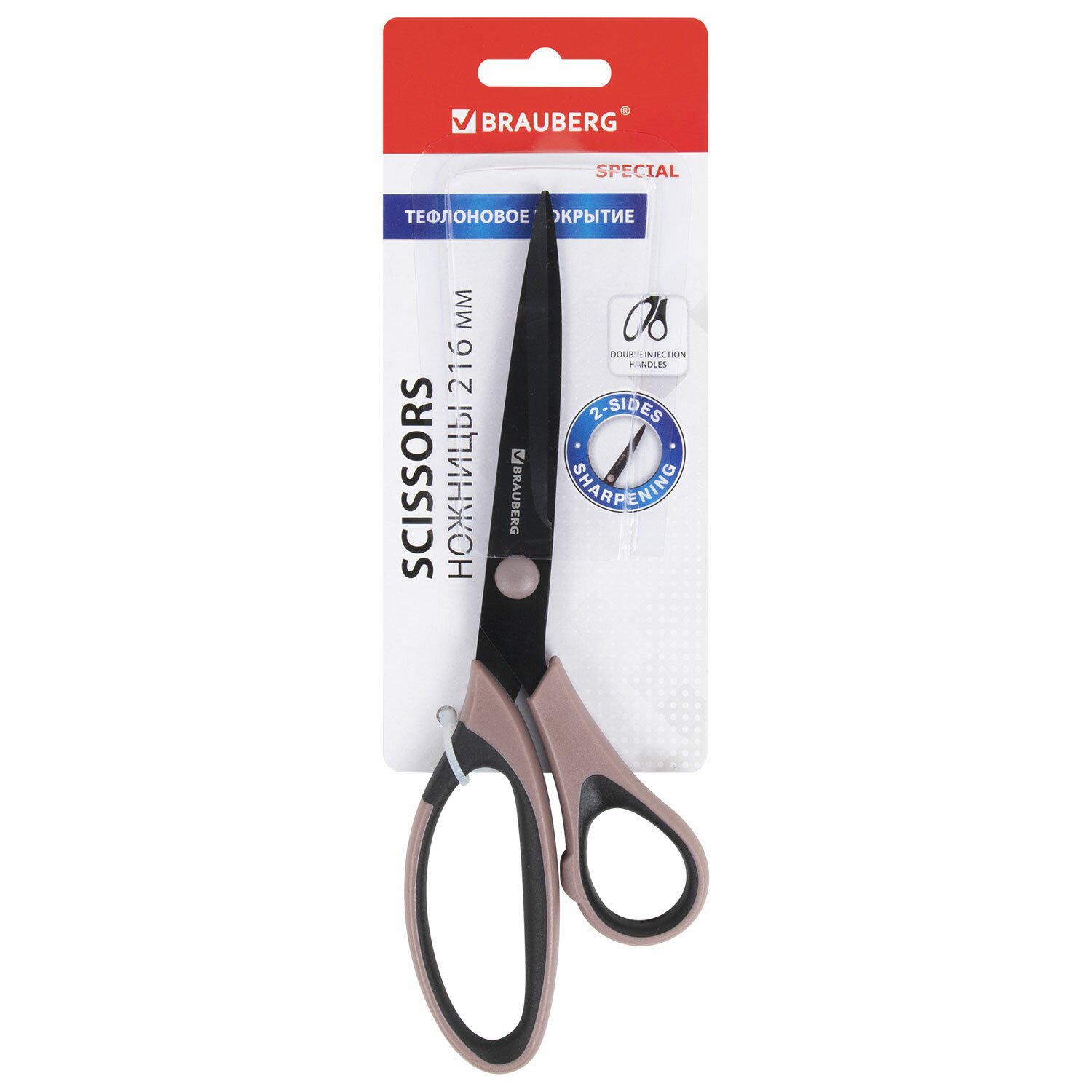 Ножницы BRAUBERG "Special" 216 мм, тефлоновое антискользящее покрытие, 2-х сторонняя заточка, 236788