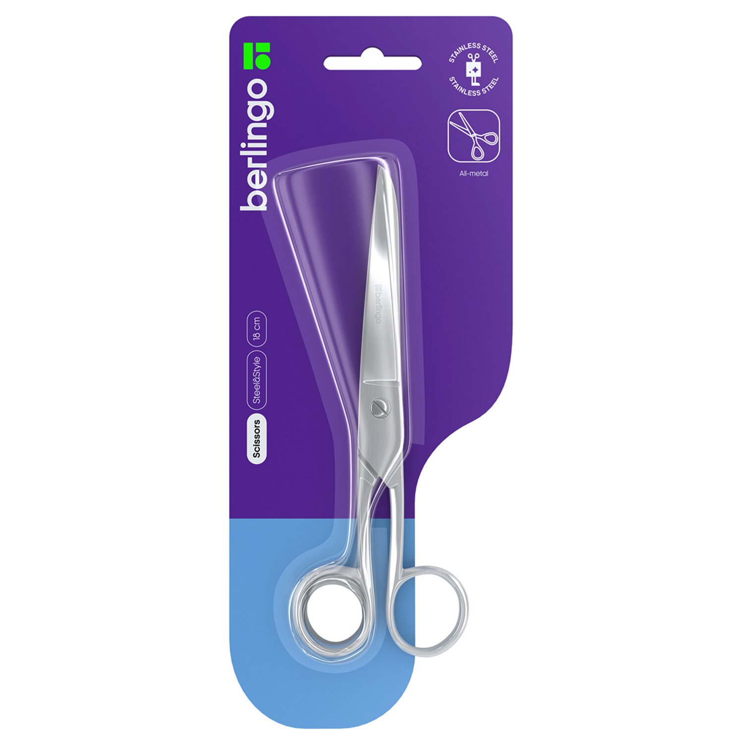 Ножницы цельнометаллические 180 мм, BERLINGO, европодвес, 256691