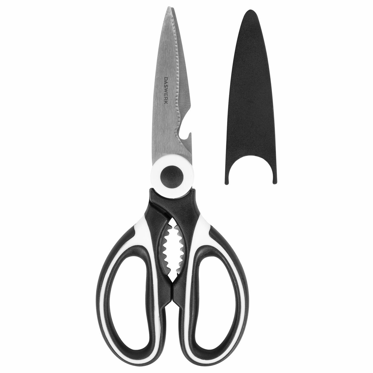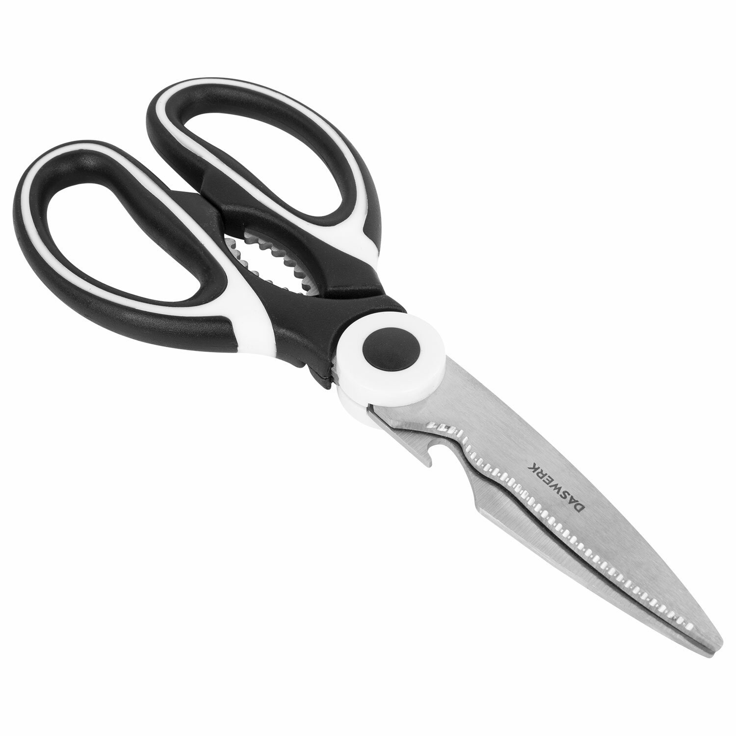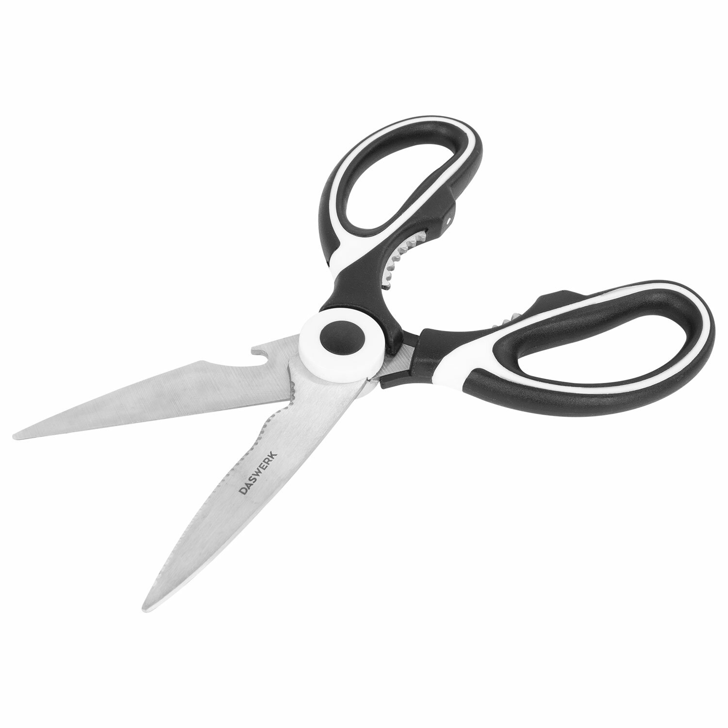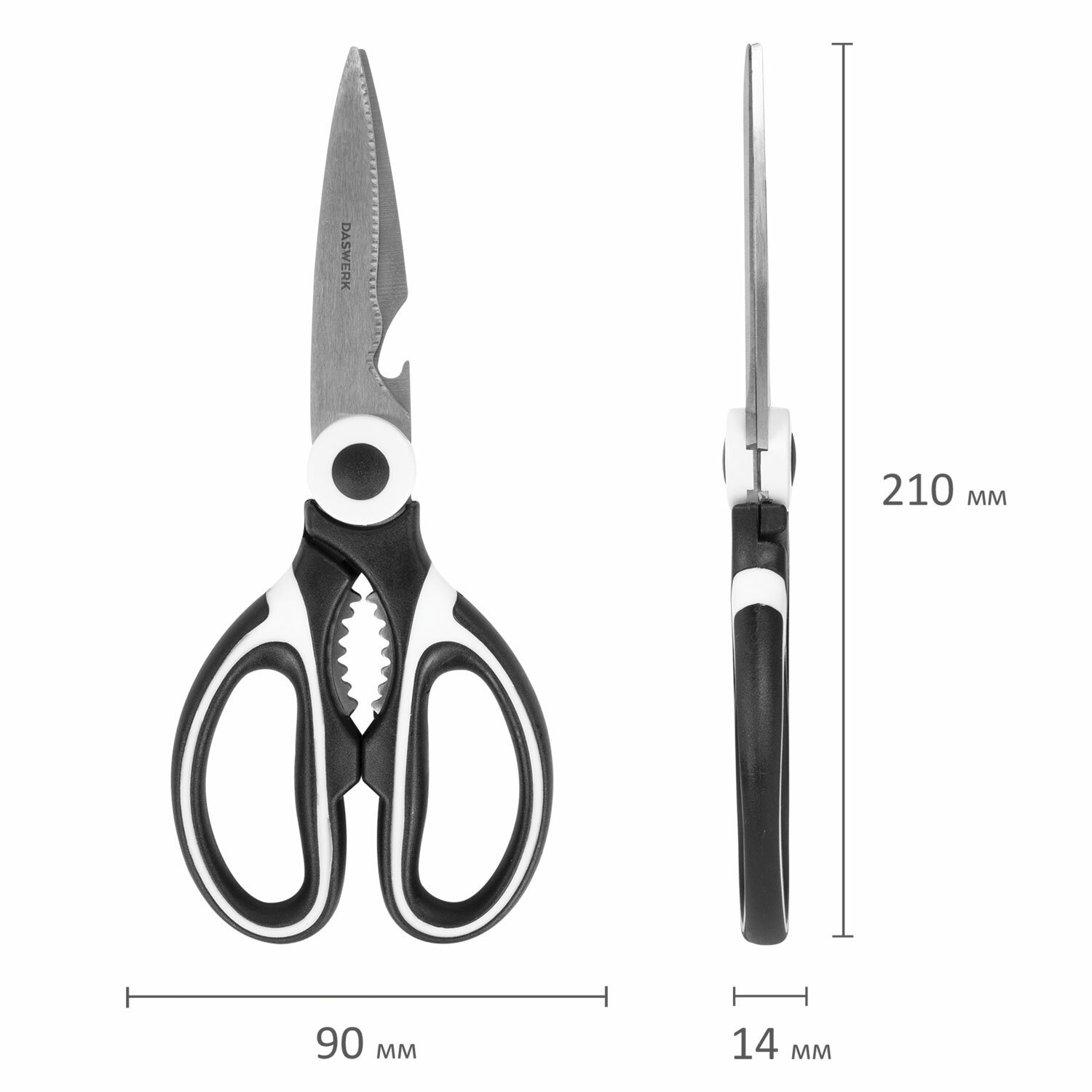 Ножницы кухонные DASWERK, 210 мм, с открывашкой, зазубренные, металлические ручки, 608901