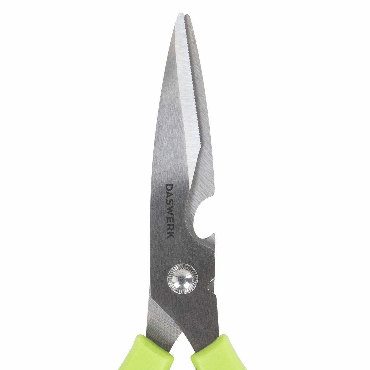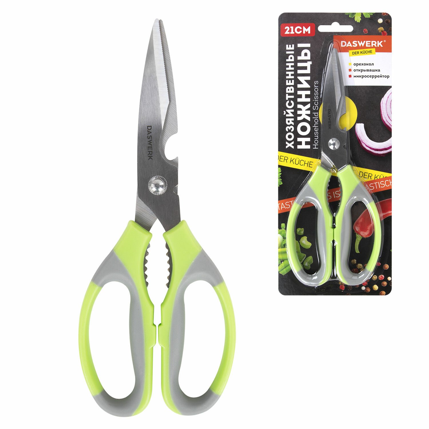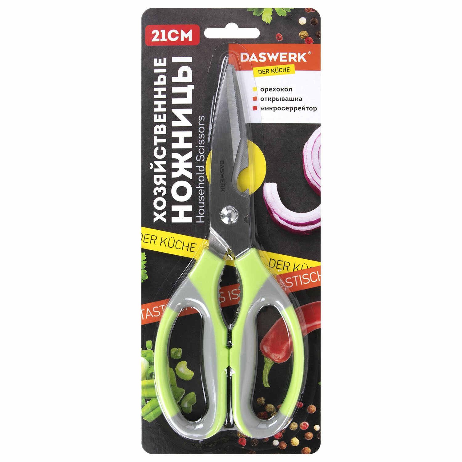 Ножницы кухонные DASWERK, 210 мм, с орехоколом, открывашкой, зазубренным лезвием, 608903