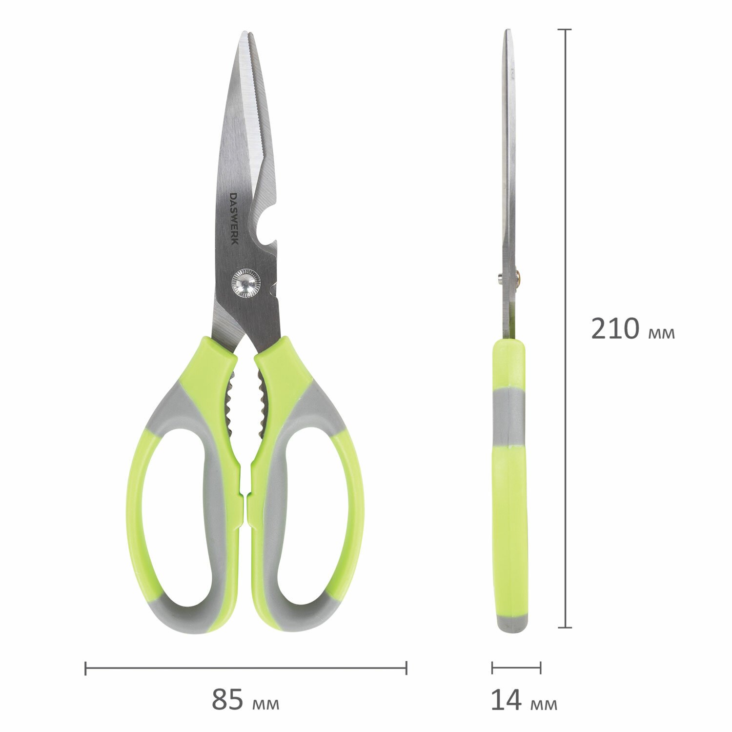Ножницы кухонные DASWERK, 210 мм, с открывашкой, зазубренные, металлические ручки, 608901