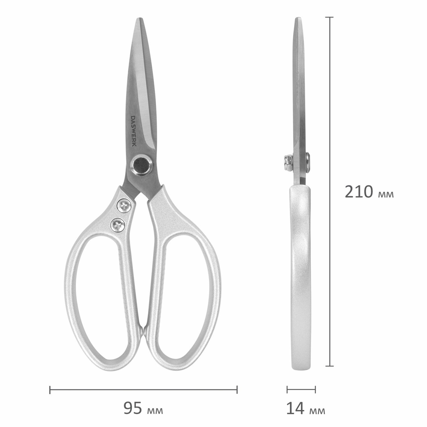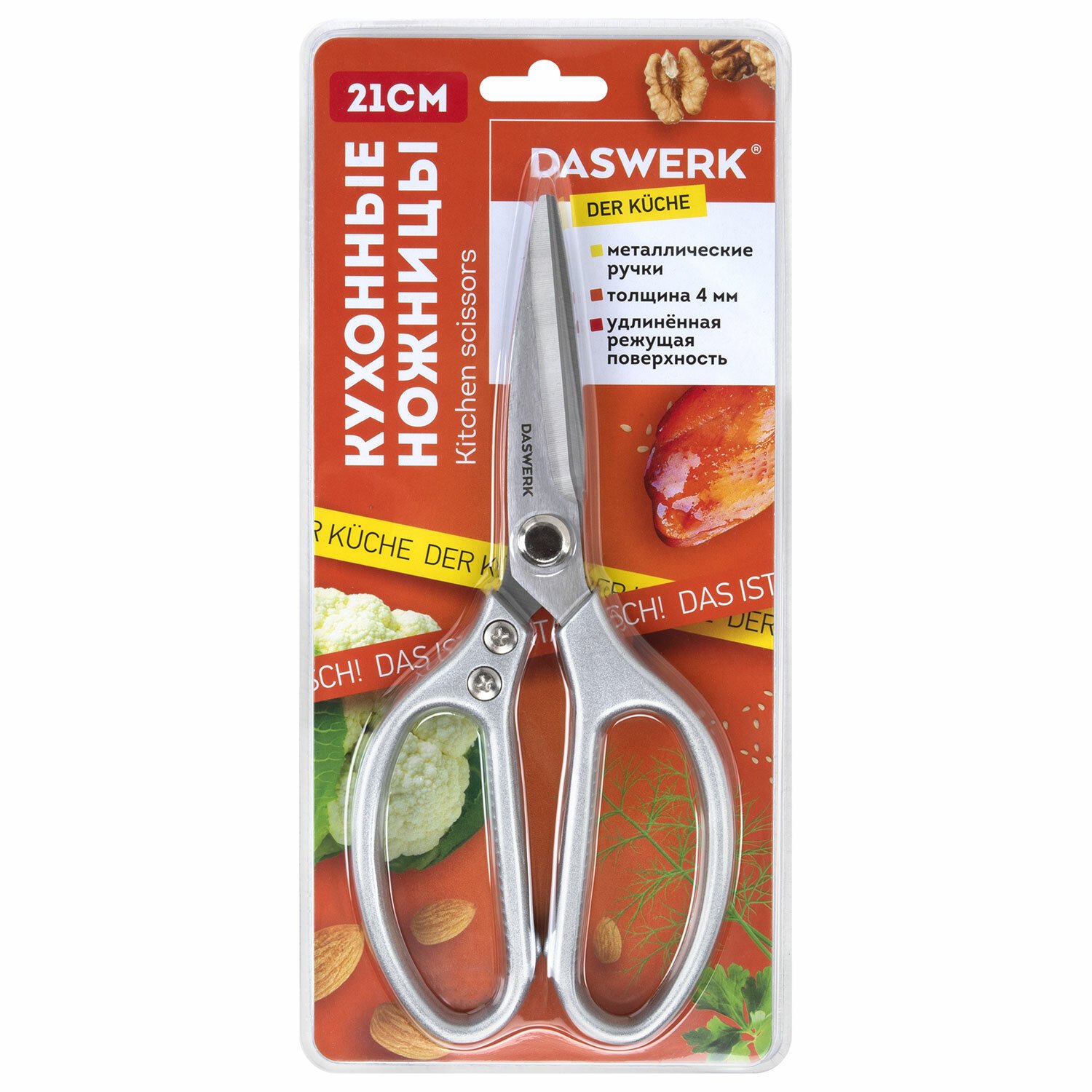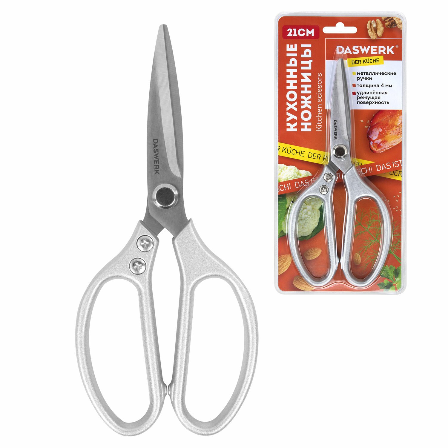 Ножницы кухонные DASWERK, 210 мм, удлиненное лезвие, металлические ручки, 608900