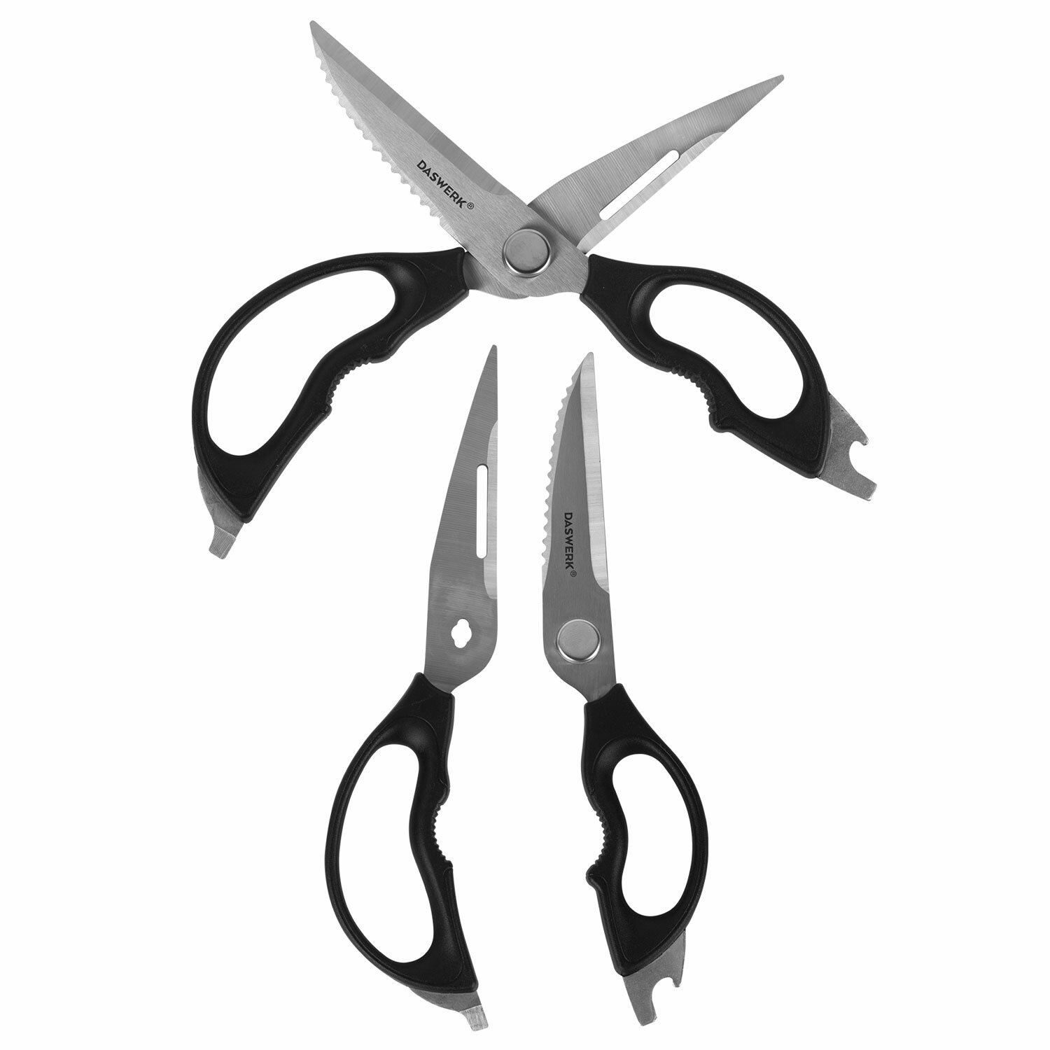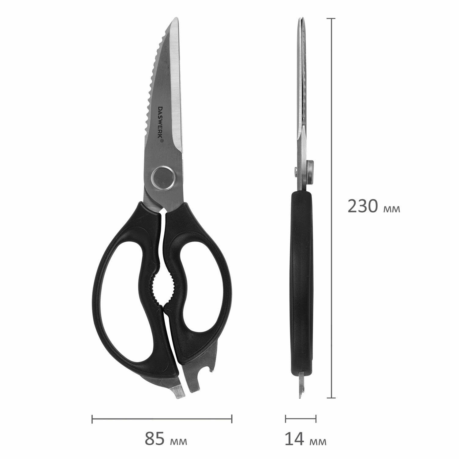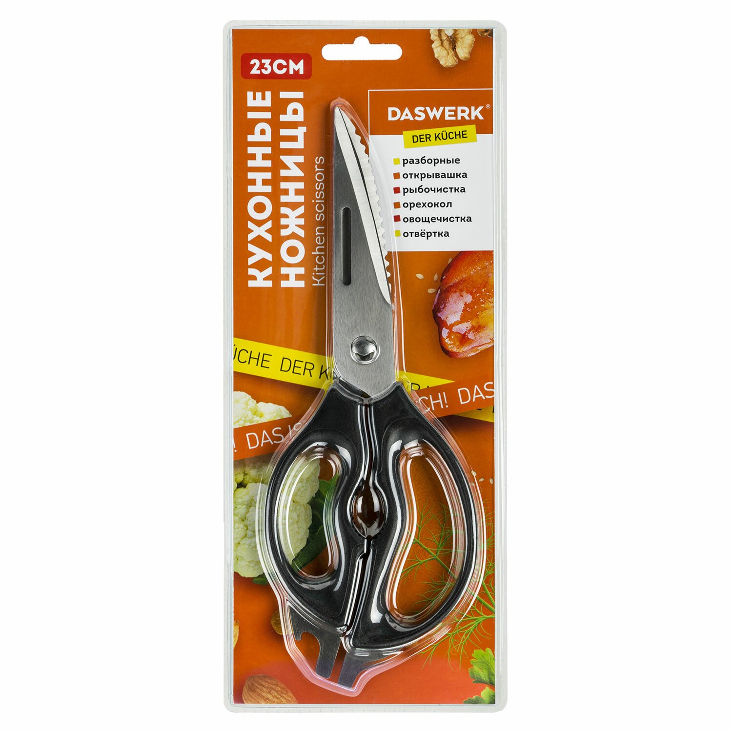 Ножницы кухонные DASWERK, 230 мм, разборные, с открывашками, зазубренные, 608906