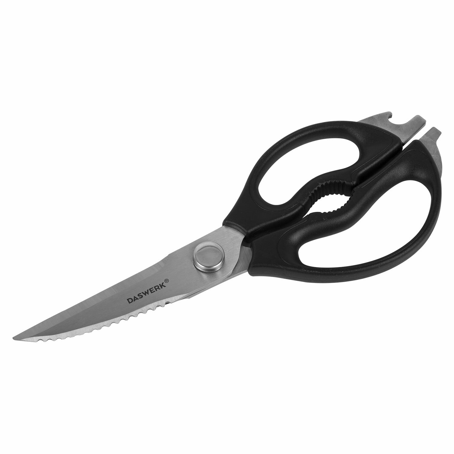 Ножницы кухонные DASWERK, 210 мм, с открывашкой, зазубренные, металлические ручки, 608901