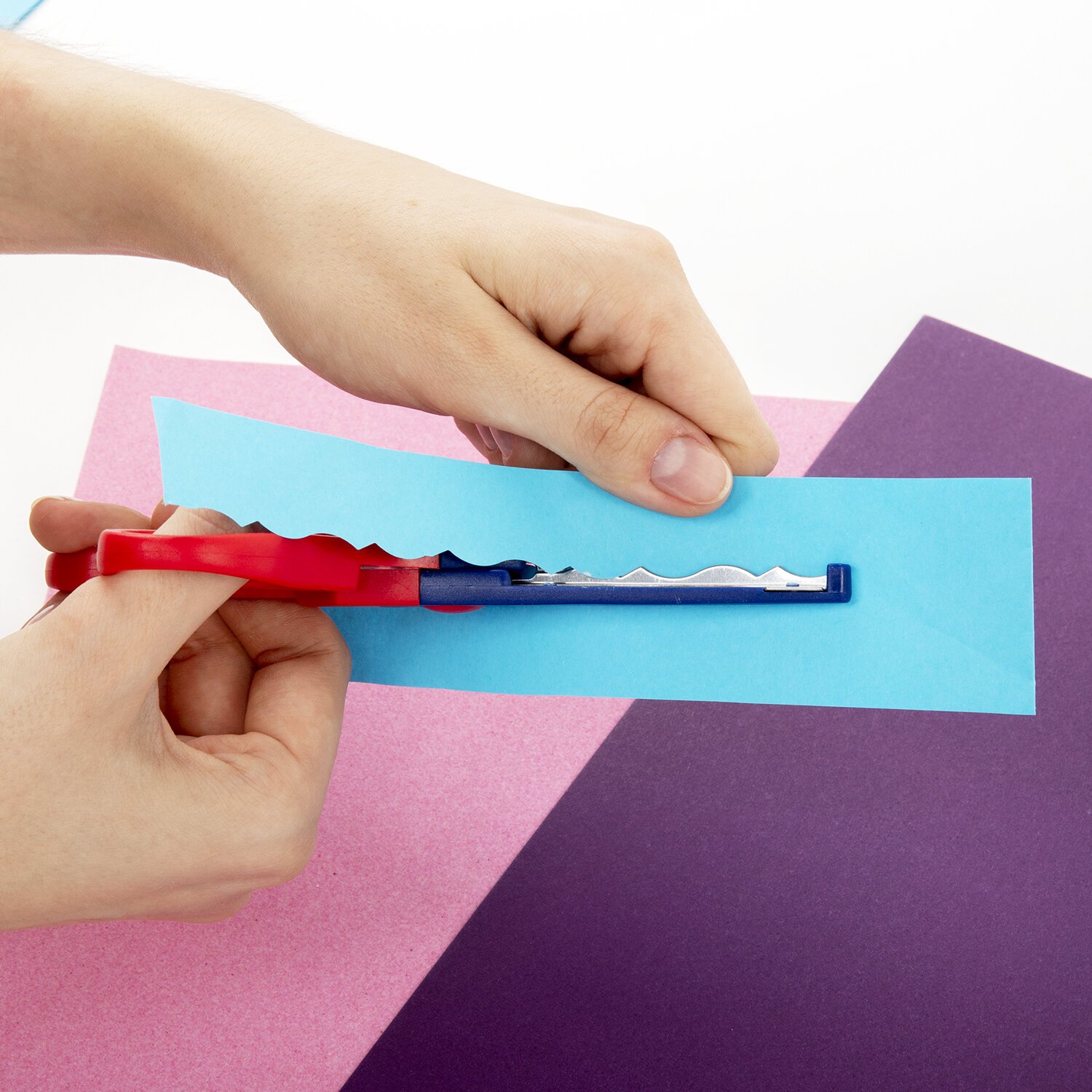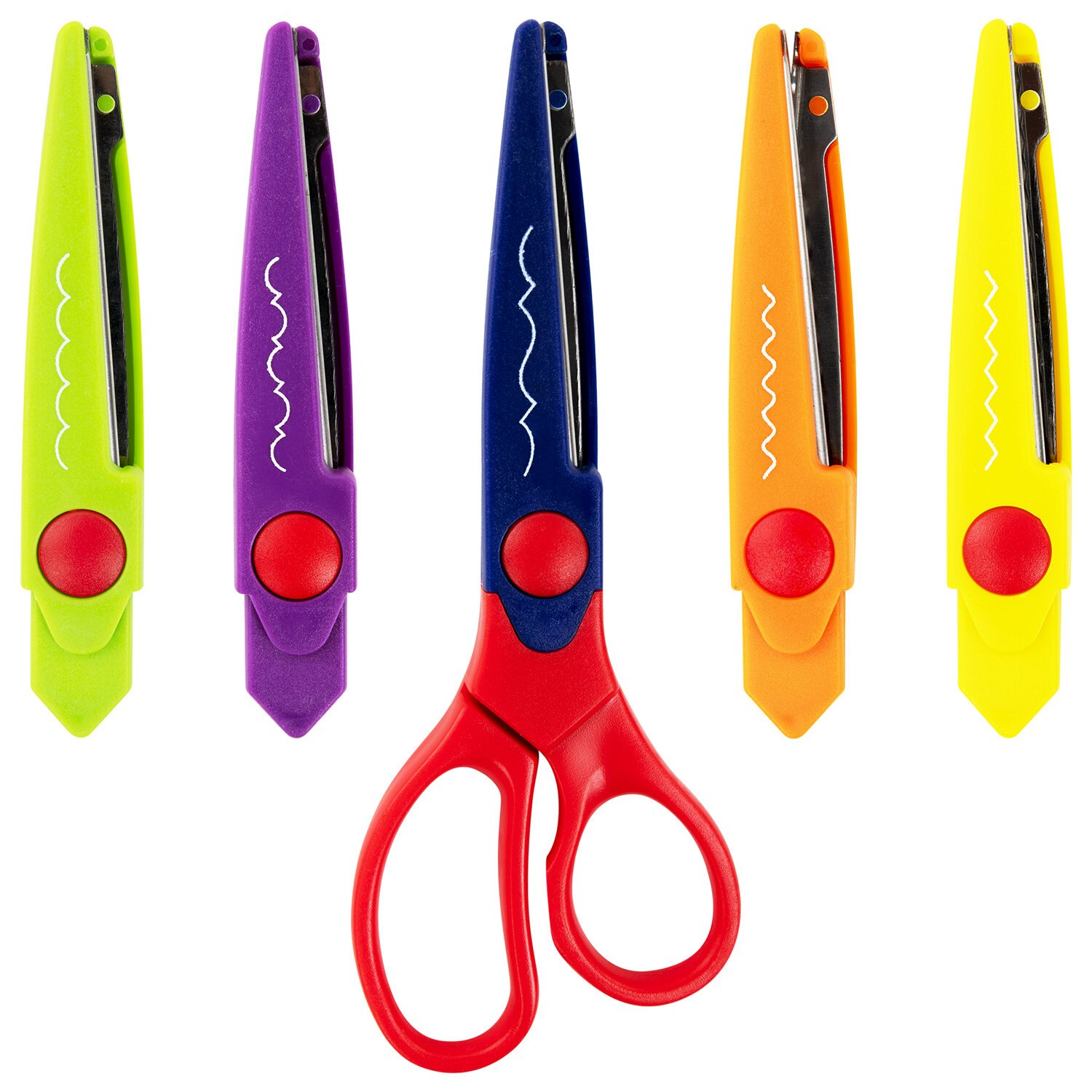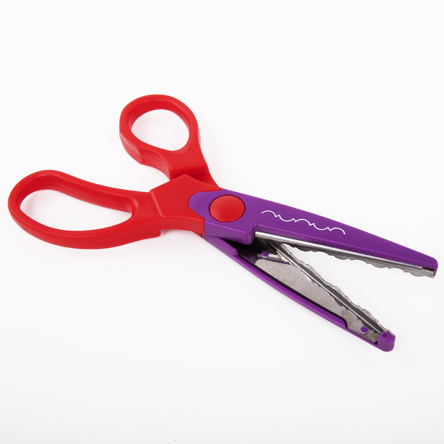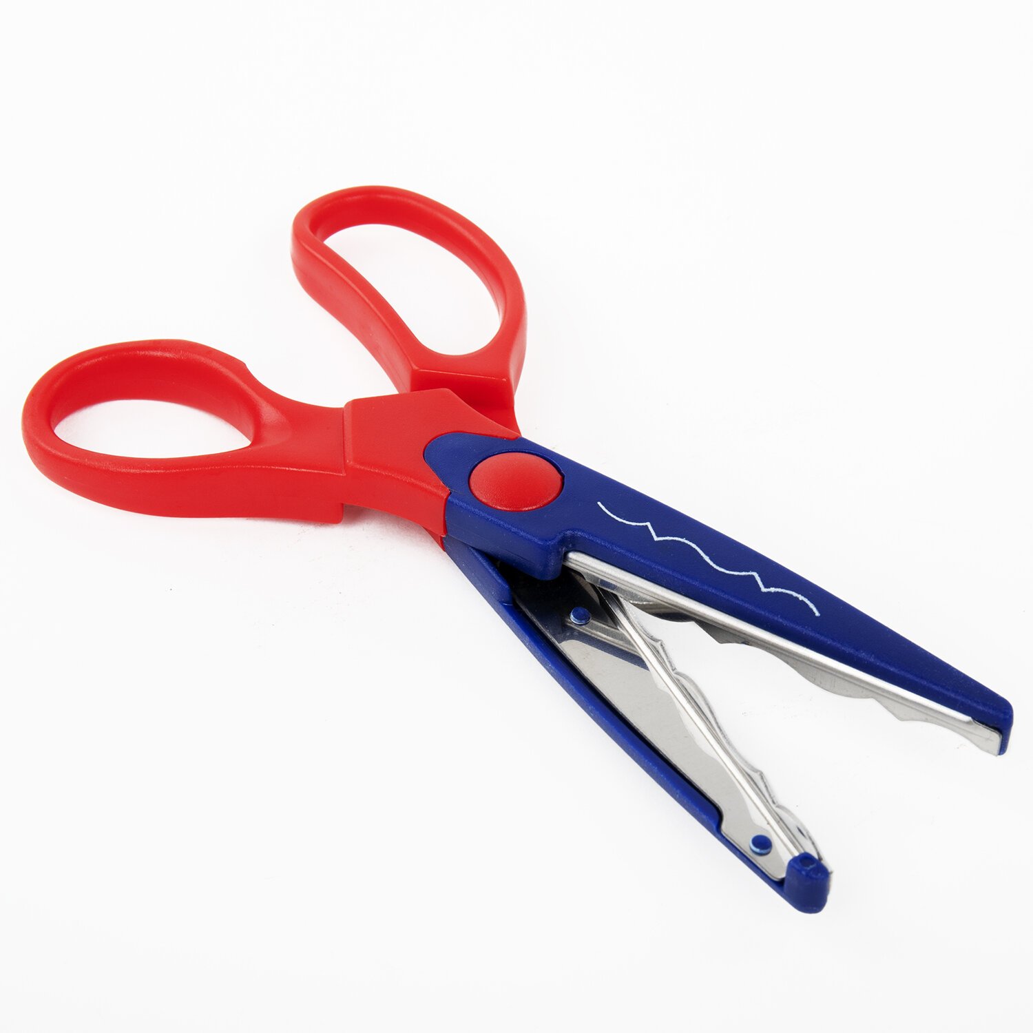 Фигурные ножницы с различными узорами в дисплее - незаменимые помощники в работе с бумагой и картоном. Яркий пластиковый корпус и металлические лезвия из нержавеющей стали с закругленными концами делают ножницы подходящими для детского использования.