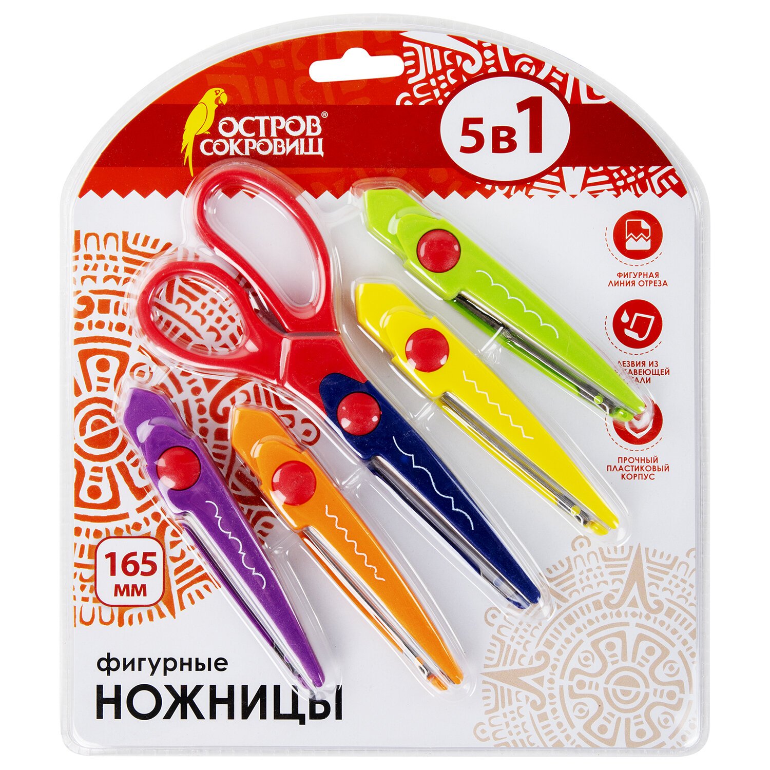 Ножницы ОСТРОВ СОКРОВИЩ, 165 мм, 5 сменных фигурных лезвий, в блистере, 236782