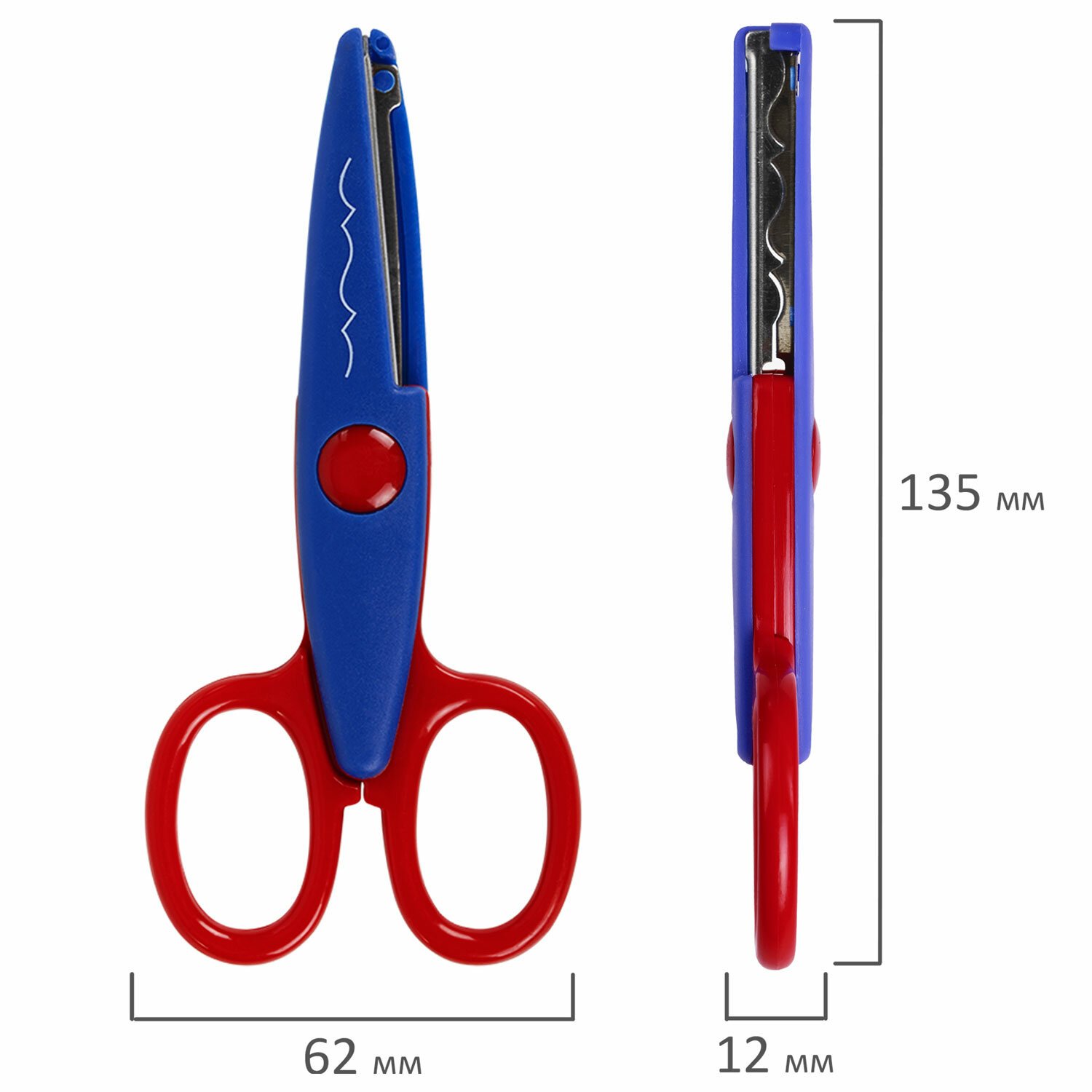 Ножницы ПИФАГОР, 135 мм, фигурное лезвие, ассорти, в дисплее, 230938