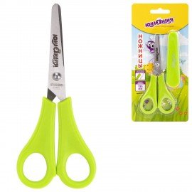 Ножницы ЮНЛАНДИЯ, 135 мм, с линейкой и футляром для лезвий, салатовые, блистер, 237109