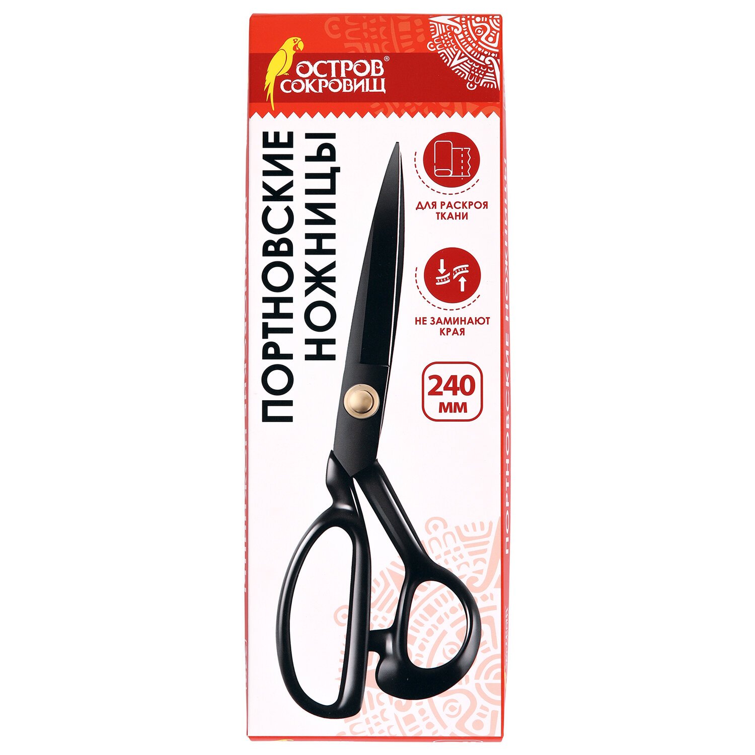 Ножницы портновские ОСТРОВ СОКРОВИЩ "КЛАССИК", 250 мм, черные, блистер, 237453