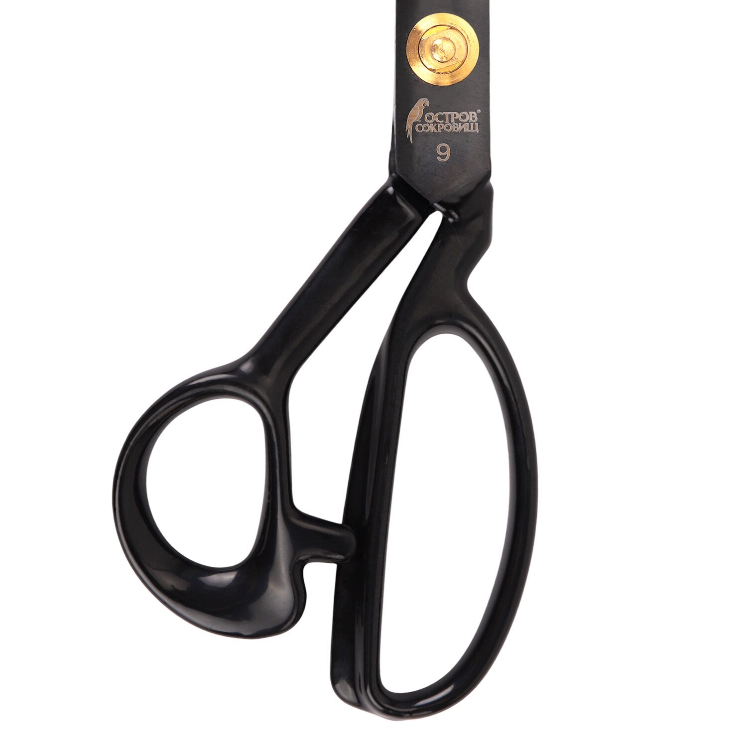 Ножницы портновские 240 мм, КЛАССИЧЕСКИЕ,черные,ручки с силиконовым покрытием, ОСТРОВ СОКРОВИЩ, 665598