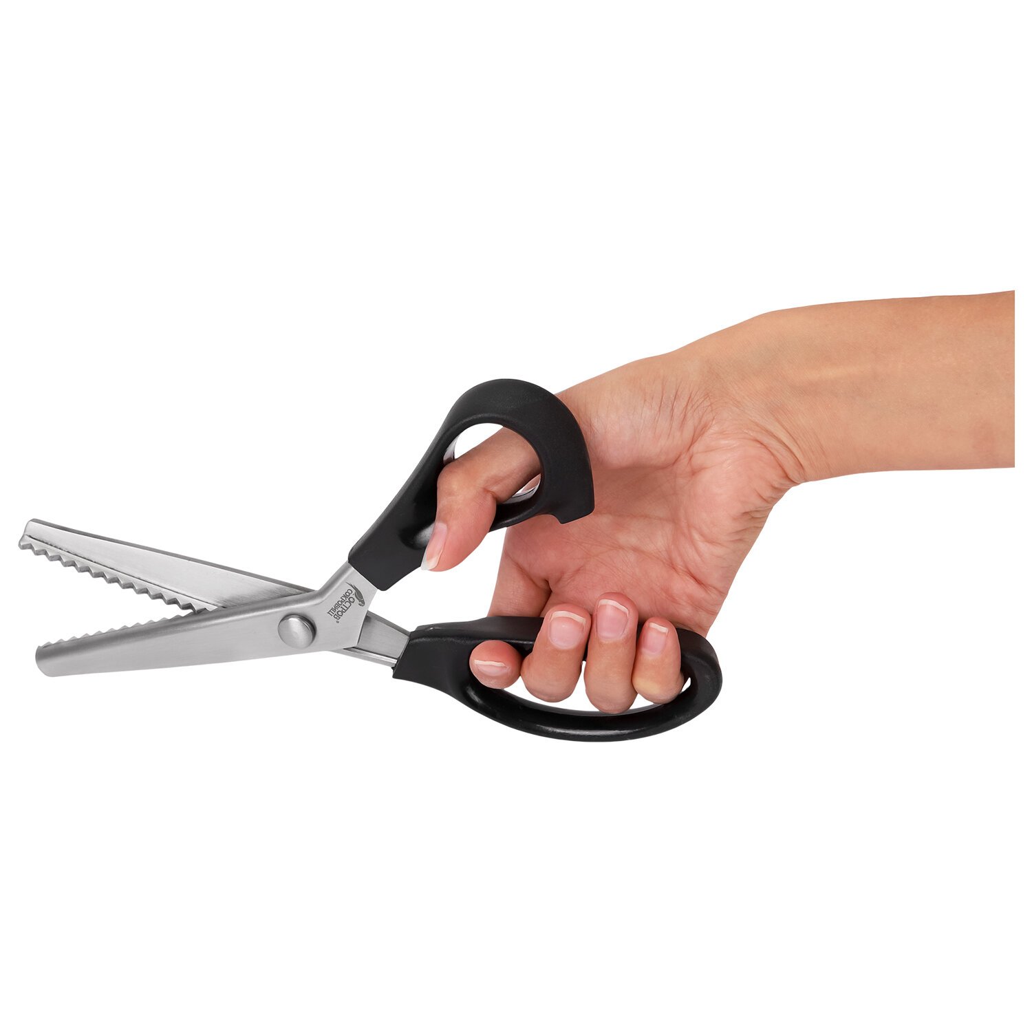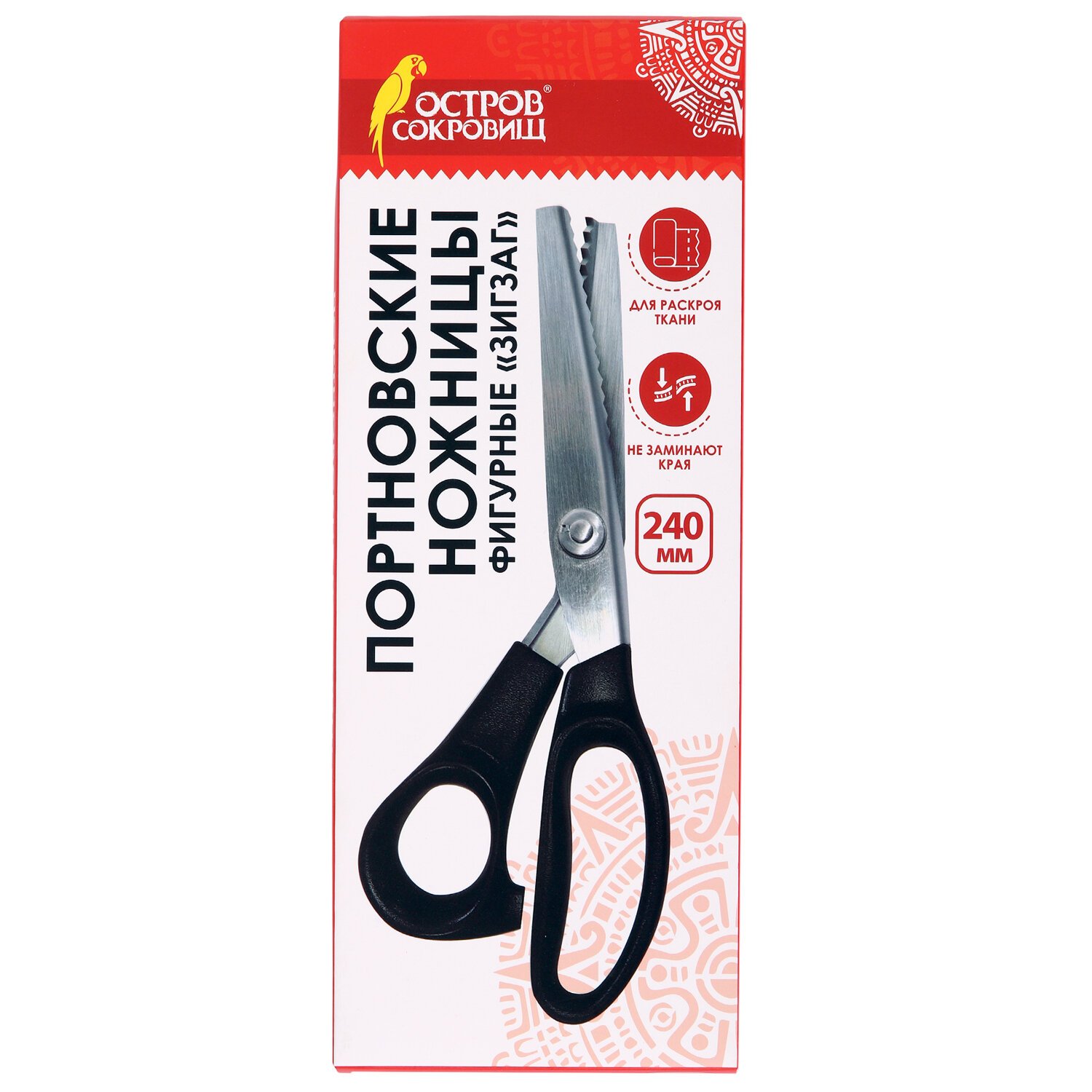 Ножницы портновские ФИГУРНЫЕ ЗИГЗАГ 240 мм, черные, пластиковые ручки, ОСТРОВ СОКРОВИЩ, 665600