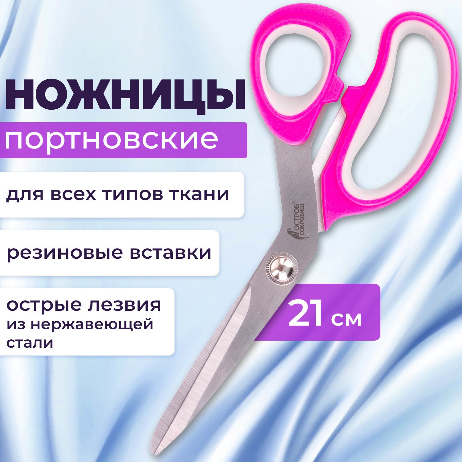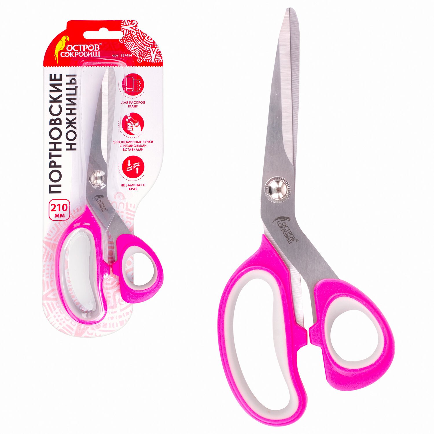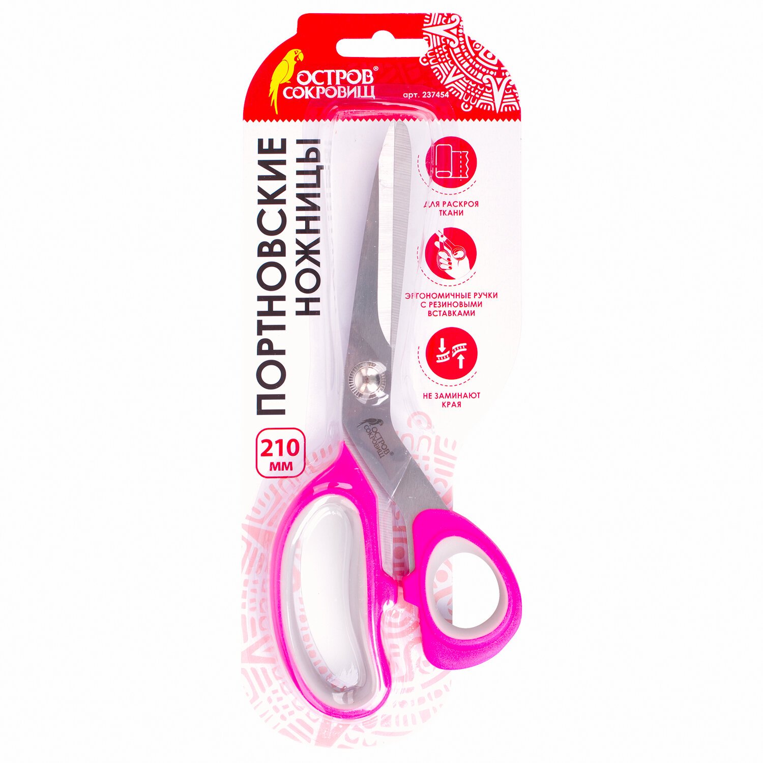 Ножницы портновские ОСТРОВ СОКРОВИЩ ПРЕМИУМ, 210 мм, фуксия с резиновыми серыми вставками, 237454