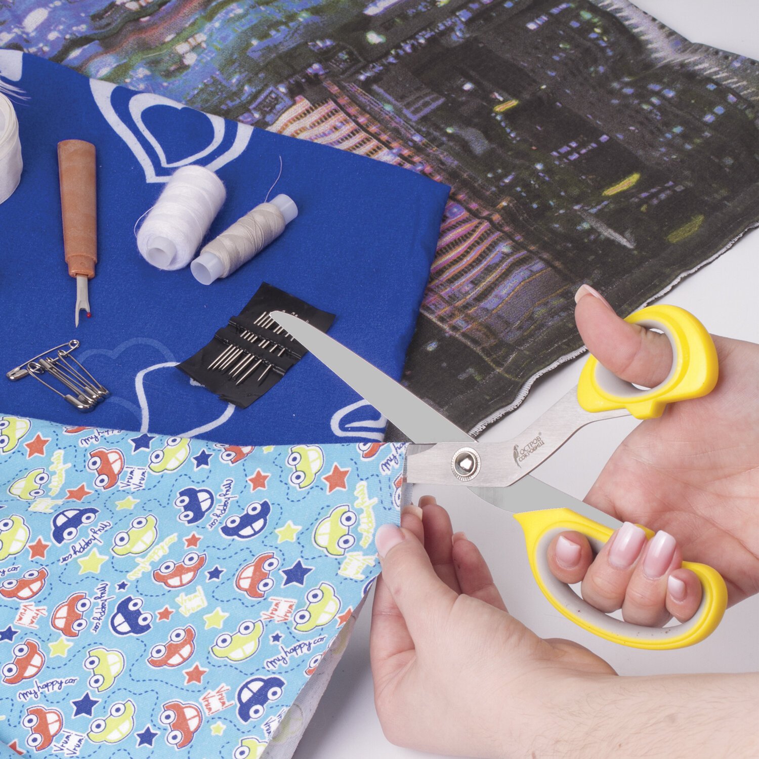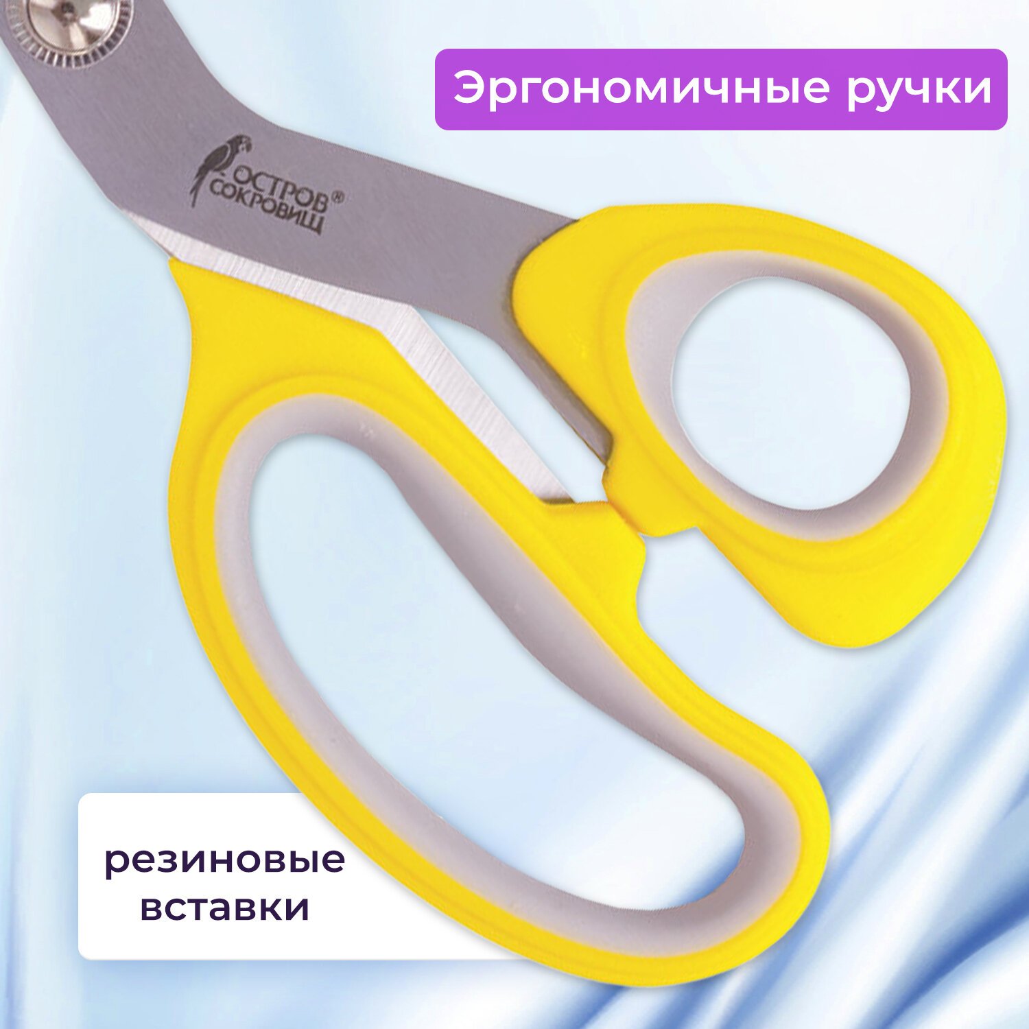 Ножницы портновские ОСТРОВ СОКРОВИЩ ПРЕМИУМ, 230 мм, желтые с резиновыми серыми вставками, 237455
