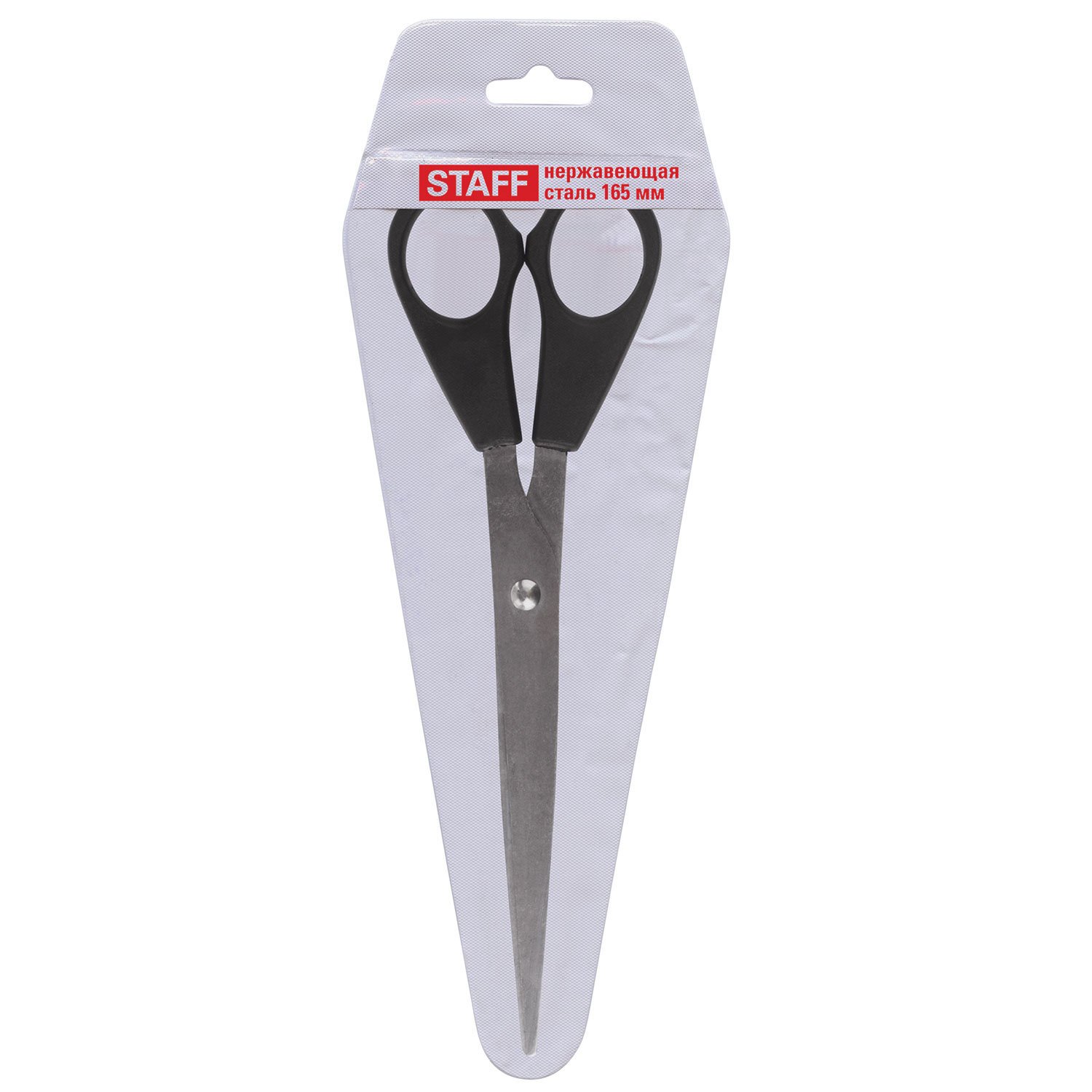 Ножницы STAFF Basic 165 мм, чёрные, ПВХ чехол с европодвесом, 235459