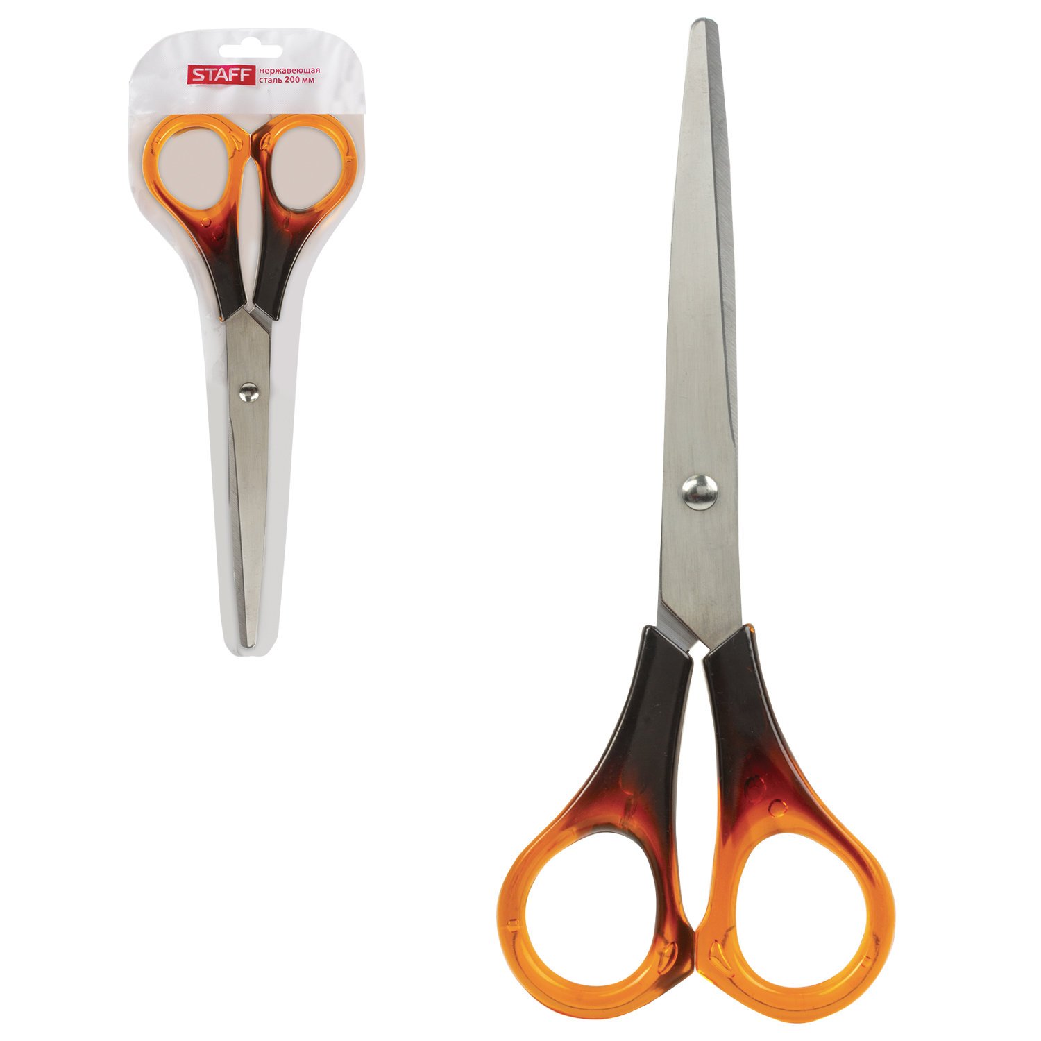 Ножницы STAFF Basic 200 мм, ручки под янтарь, ПВХ чехол с европодвесом, 236938