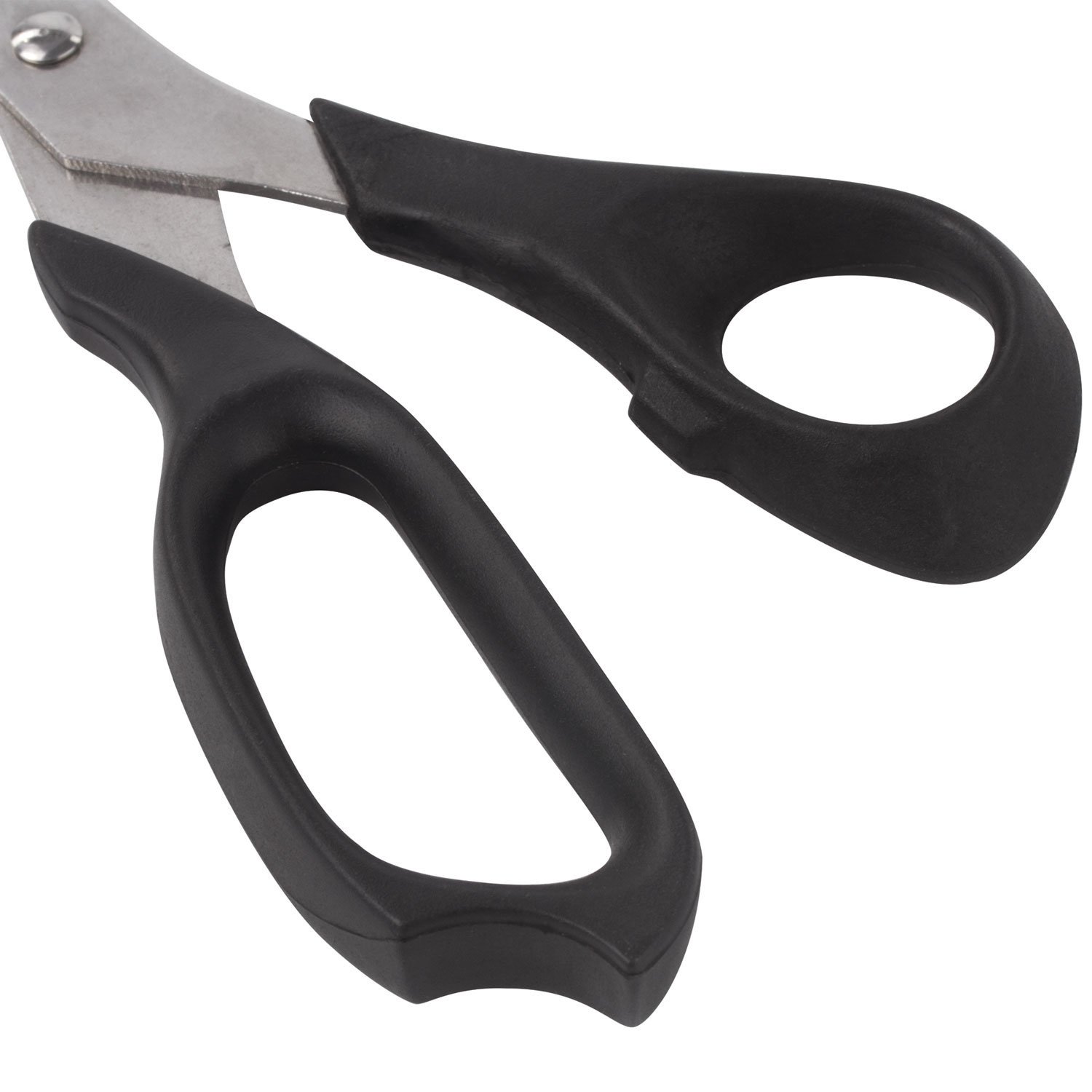 Инструмент 210 мм длиной подходит для разрезания мягких материалов в офисе, дома или в школьном кабинете. За счет специфической формы колец, ножницы удобно держать в руках. Отсутствие излишеств в дизайне с лихвой компенсируется ценовой доступностью. Классический черный цвет отлично впишется в любое рабочее пространство.