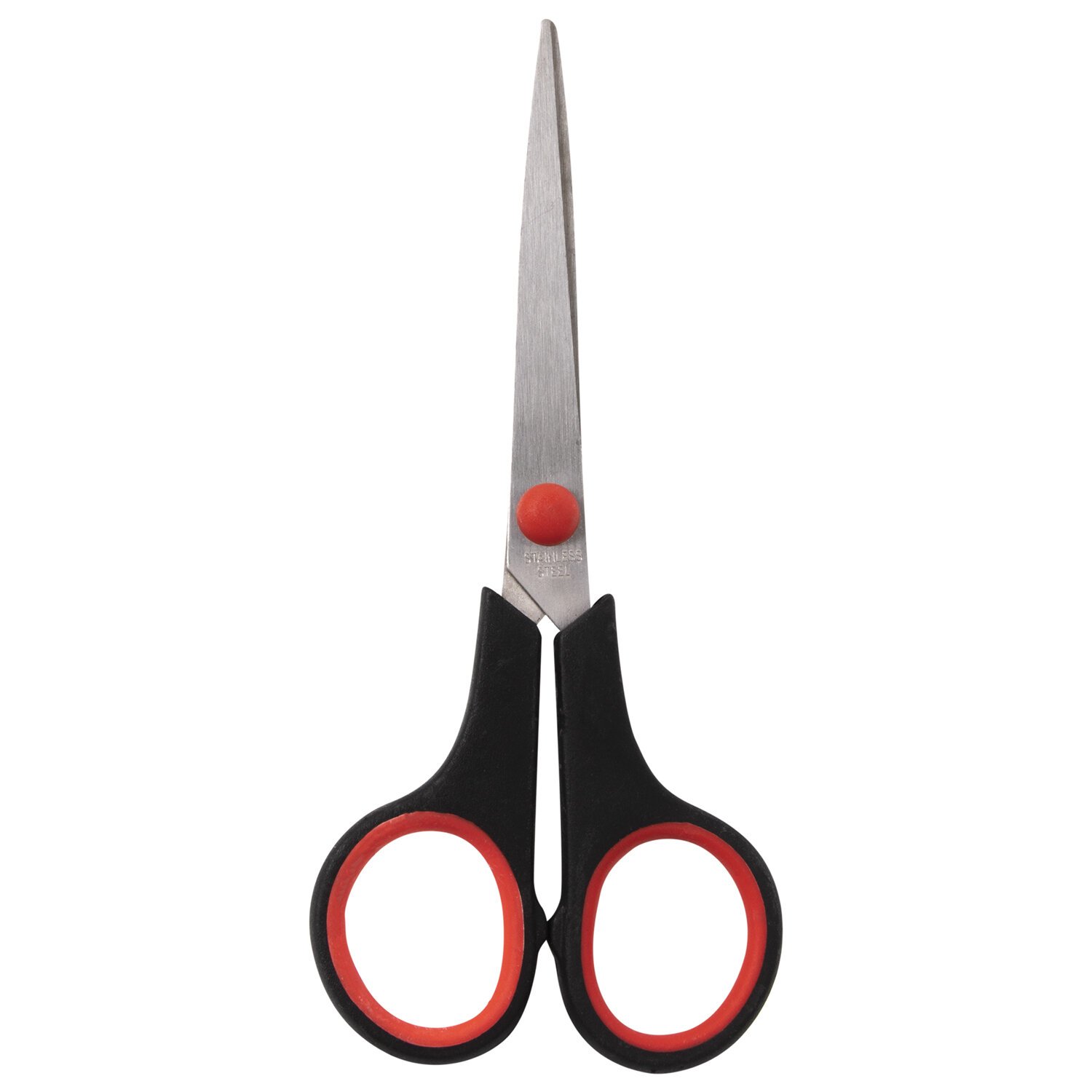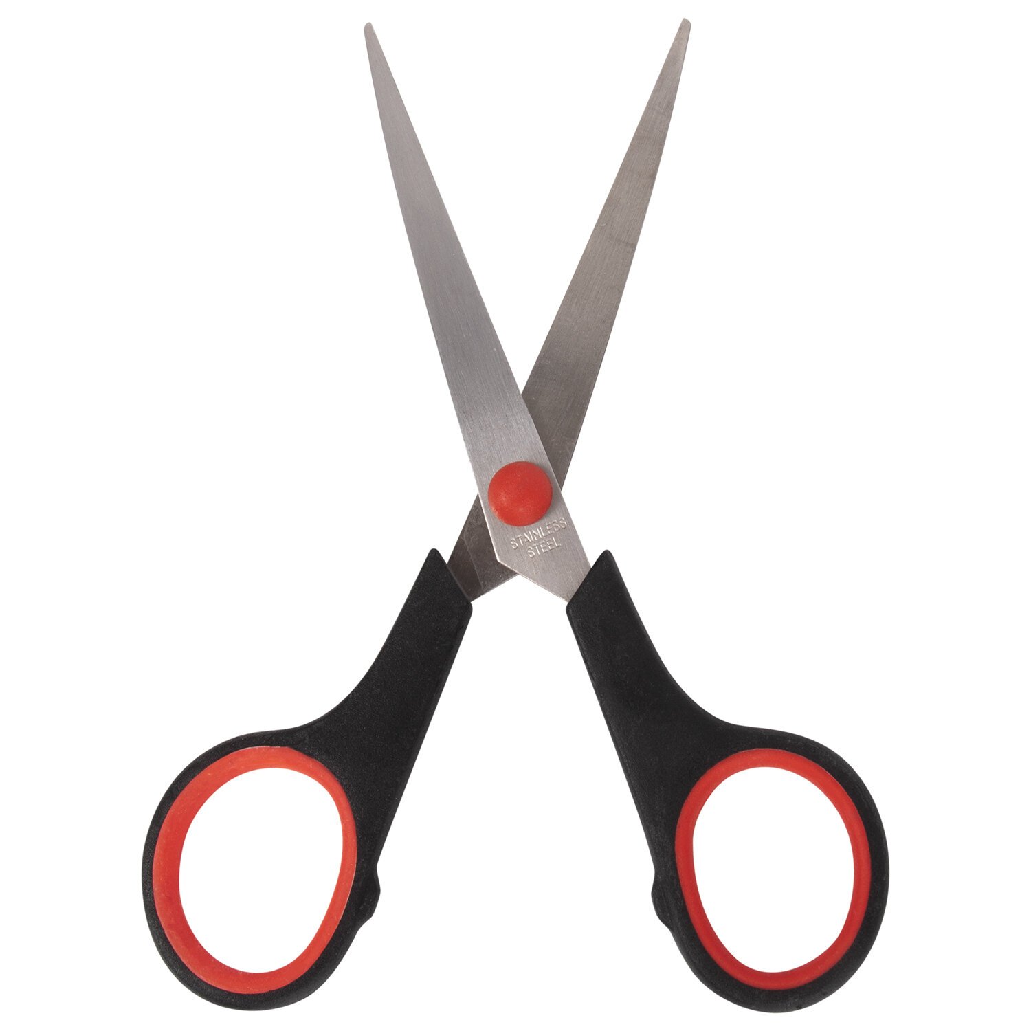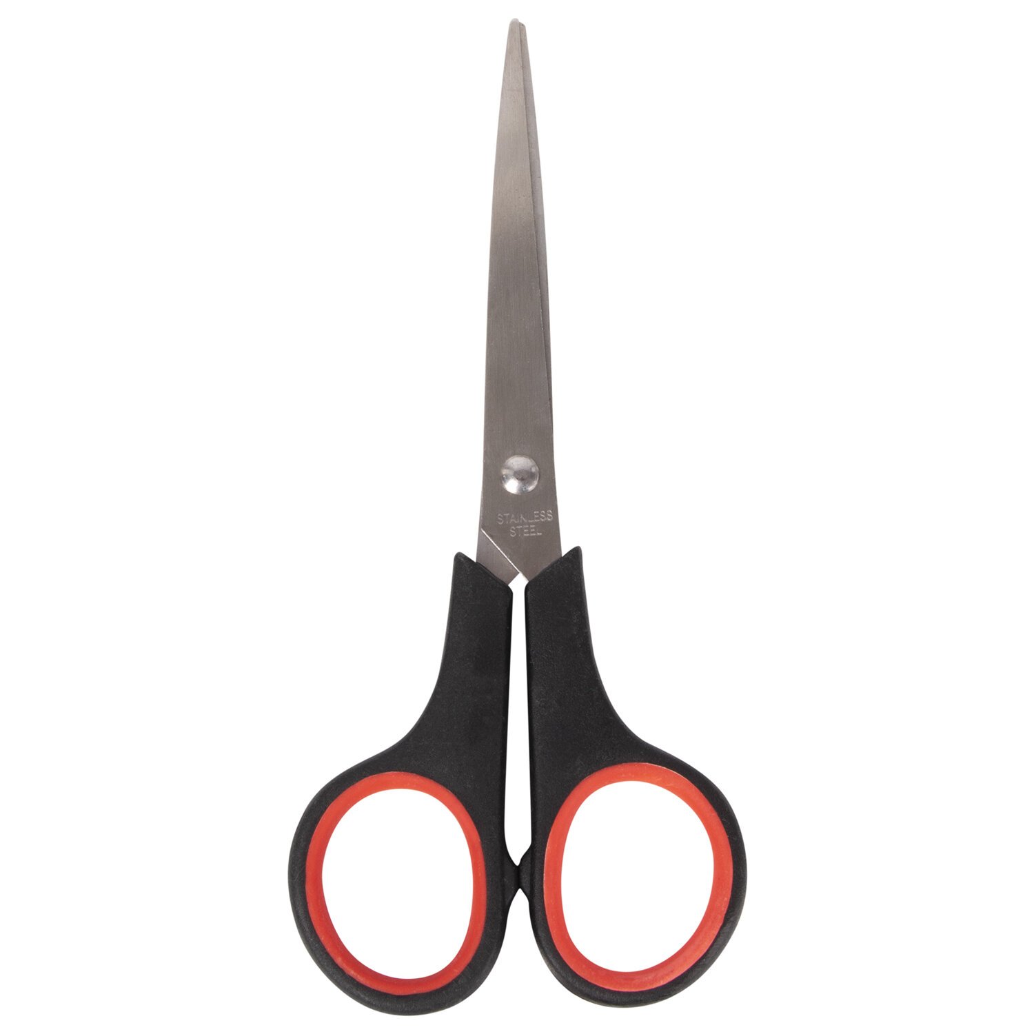 Ножницы STAFF EVERYDAY, 170 мм, бюджет, резиновые вставки, черно-красные, ПВХ чехол, 237498
