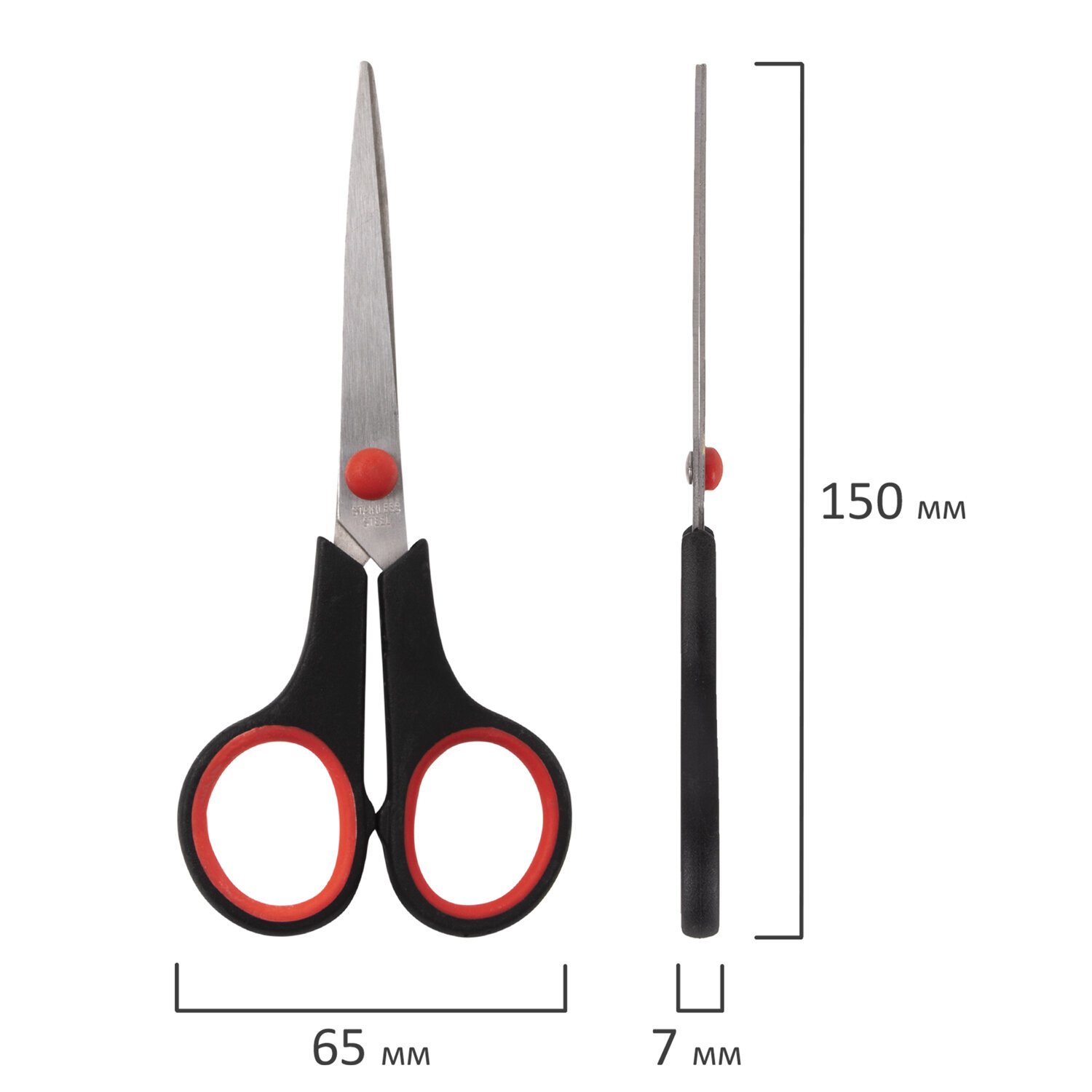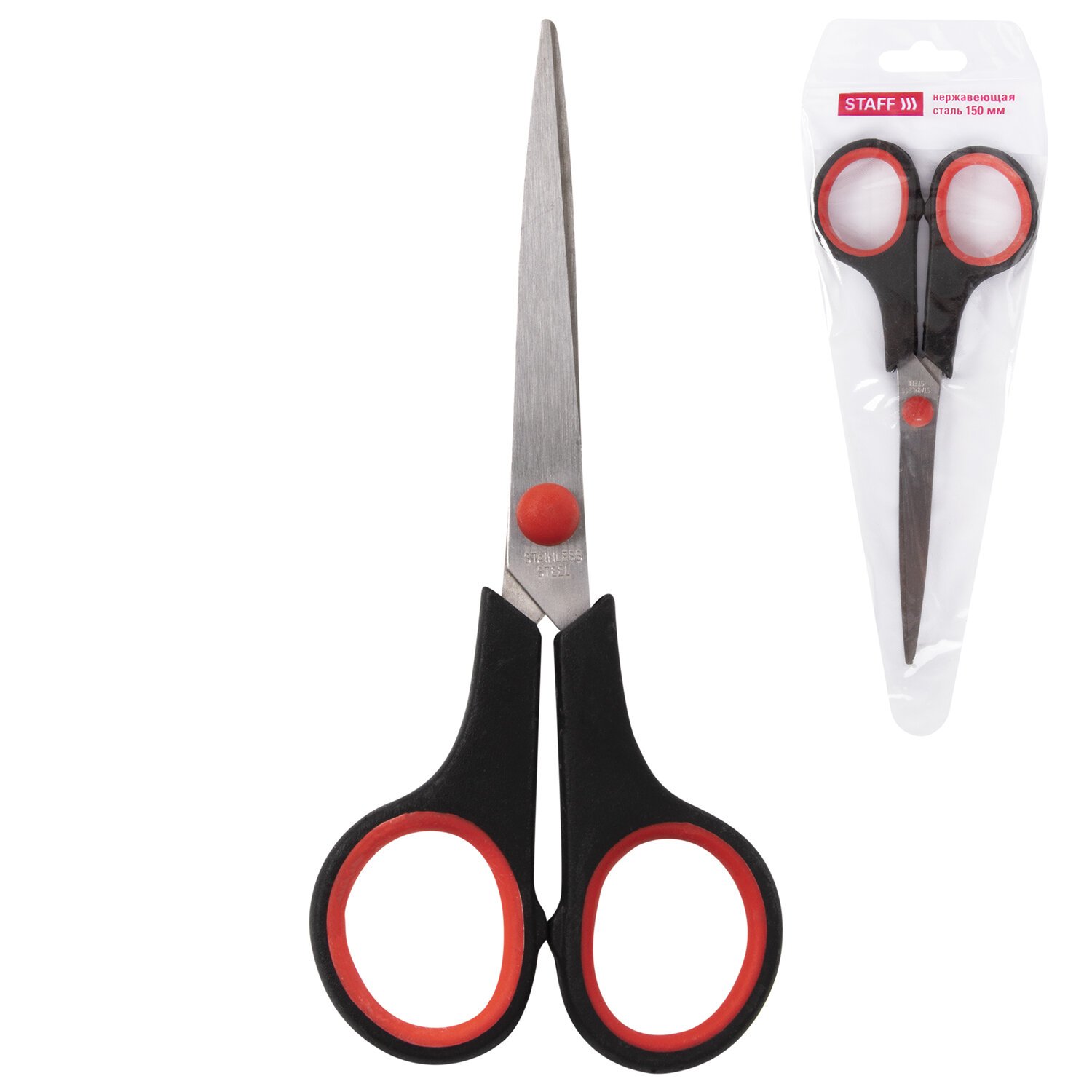 Ножницы STAFF EVERYDAY, 150 мм, бюджет, резиновые вставки, черно-красные, ПВХ чехол, 237497.