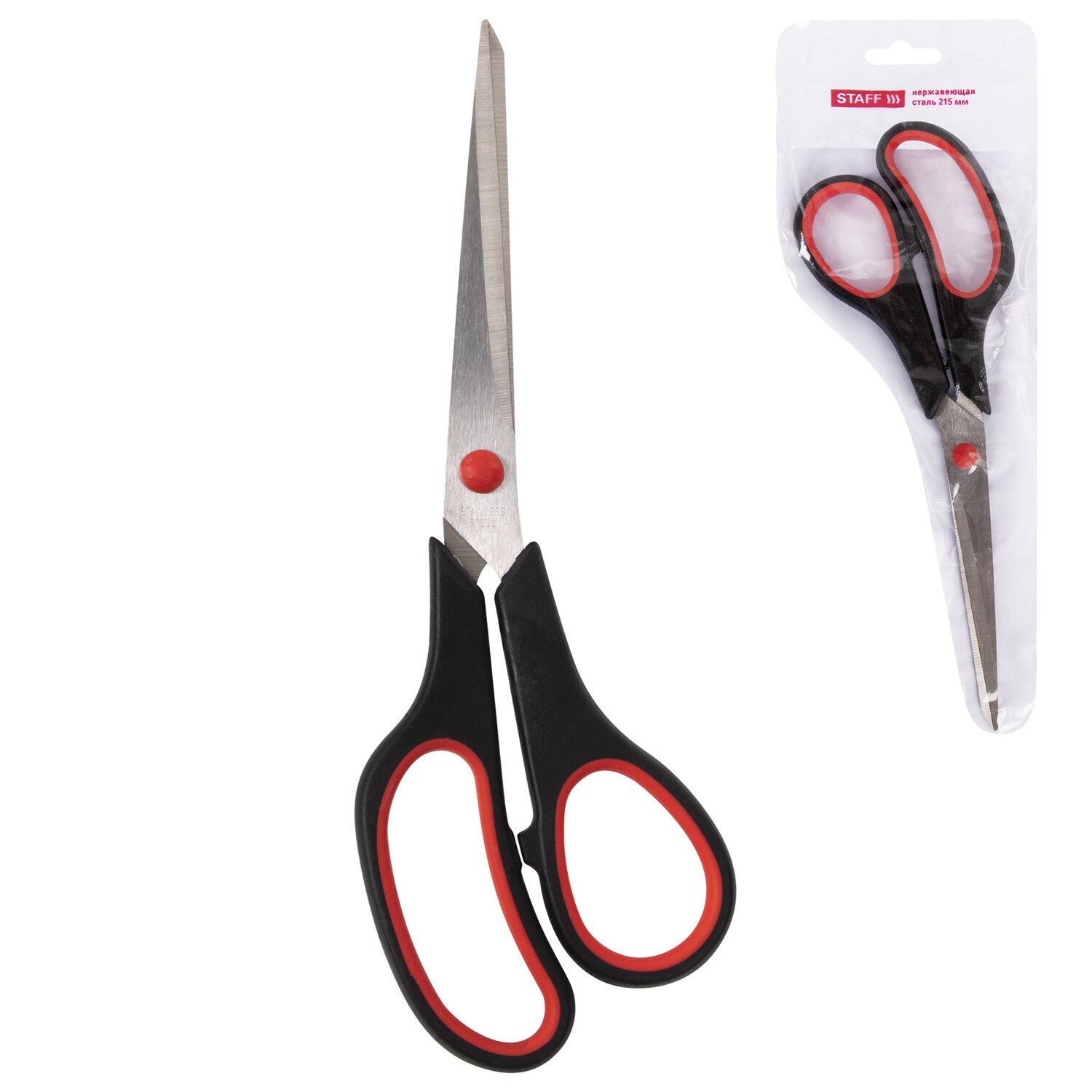 Ножницы STAFF EVERYDAY, 215 мм, бюджет, резиновые вставки, черно-красные, ПВХ чехол, 237500