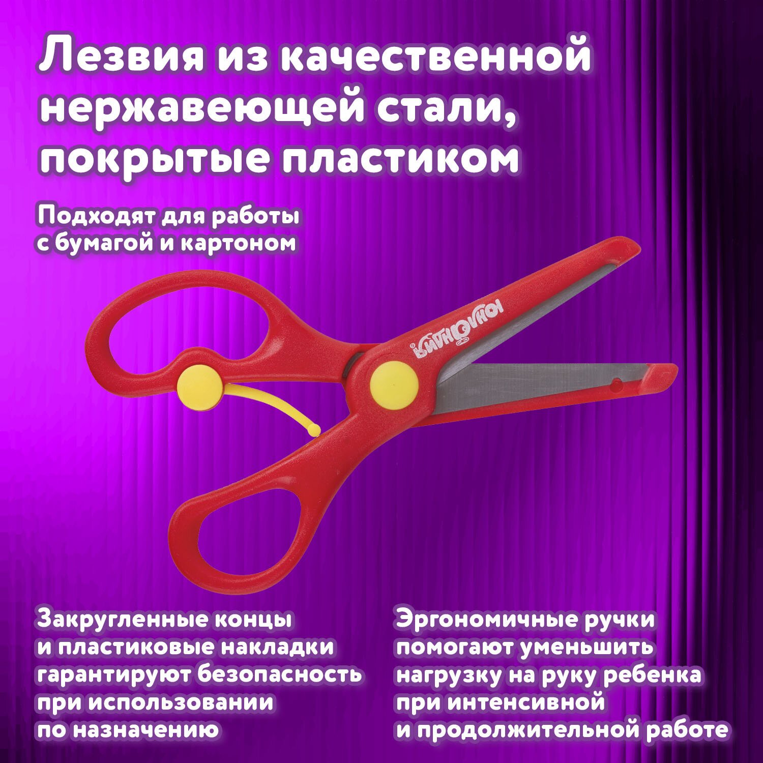 Ребенок без труда сможет пользоваться такими ножницами, так как их длина - 140 мм. Закругленные концы и пластиковые накладки гарантируют безопасность при использовании ножниц по назначению. Лезвия изготовлены из прочной нержавеющей стали, что обеспечивает максимально долгий срок службы и аккуратное разрезание разных видов материалов. Усилитель помогает ребенку вернуть лезвия в исходное положение, облегчая тем самым работу с ножницами. Предназначены для правши.