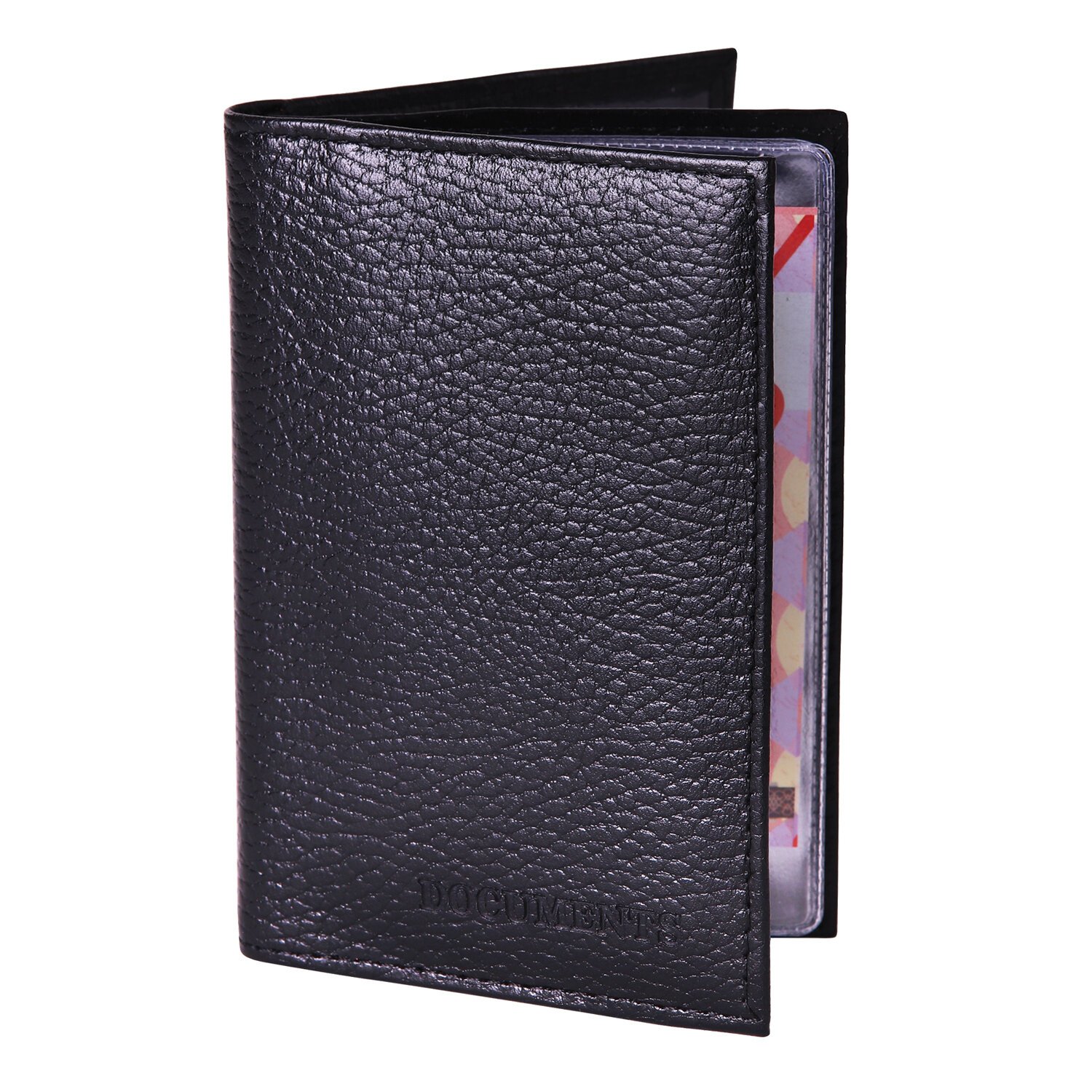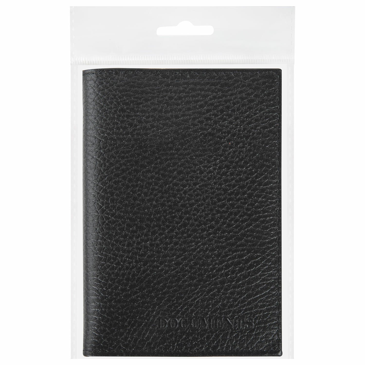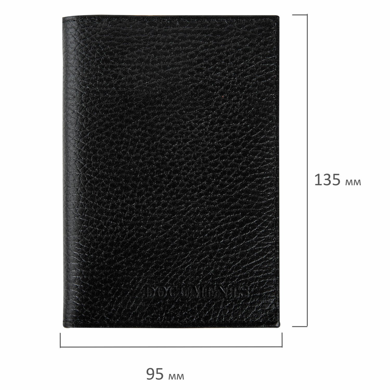 Обложка для автодокументов и паспорта натуральная кожа флоттер, "DOCUMENTS", черная, BRAUBERG 238193