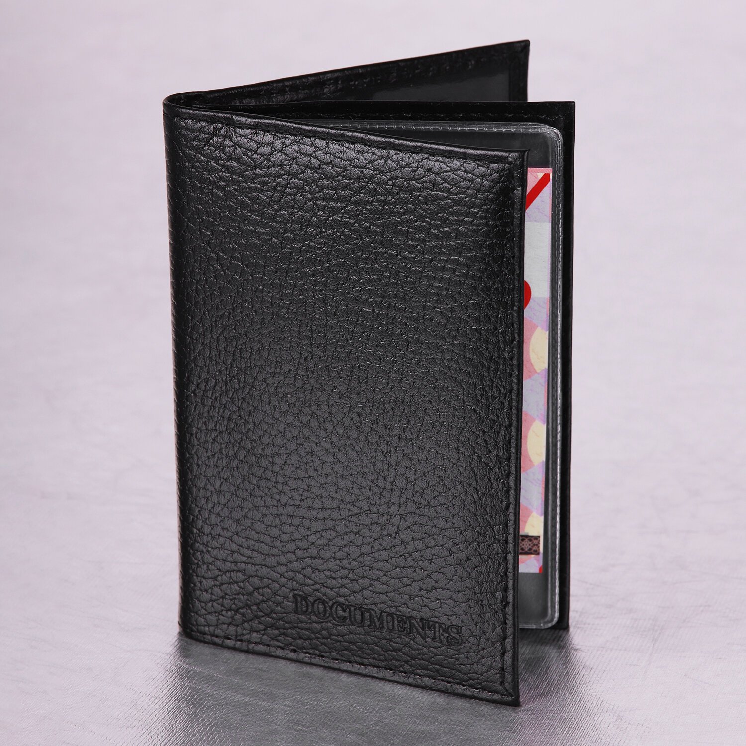 Модель выполнена из натуральной кожи в чёрном цвете с тиснением "Documents". Вмещает в себя обложку для паспорта из натуральной кожи и 6 пластиковых карманов для автодокументов: 1 файл для водительского удостоверения (60х89 мм), 4 файла размером 80х120 мм (подходят для СТС) и 1 файл для страхового полиса или доверенности формата А5 (150х216 мм) - документ формата А5 подразумевает его складывание пополам лицевой стороной наружу. Дополнительно присутствует карман для пластиковой карты.