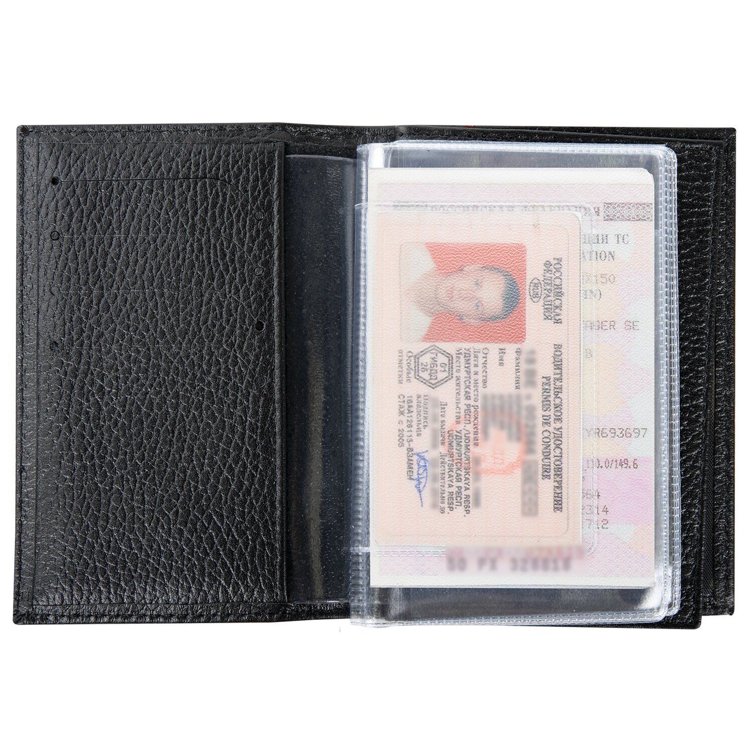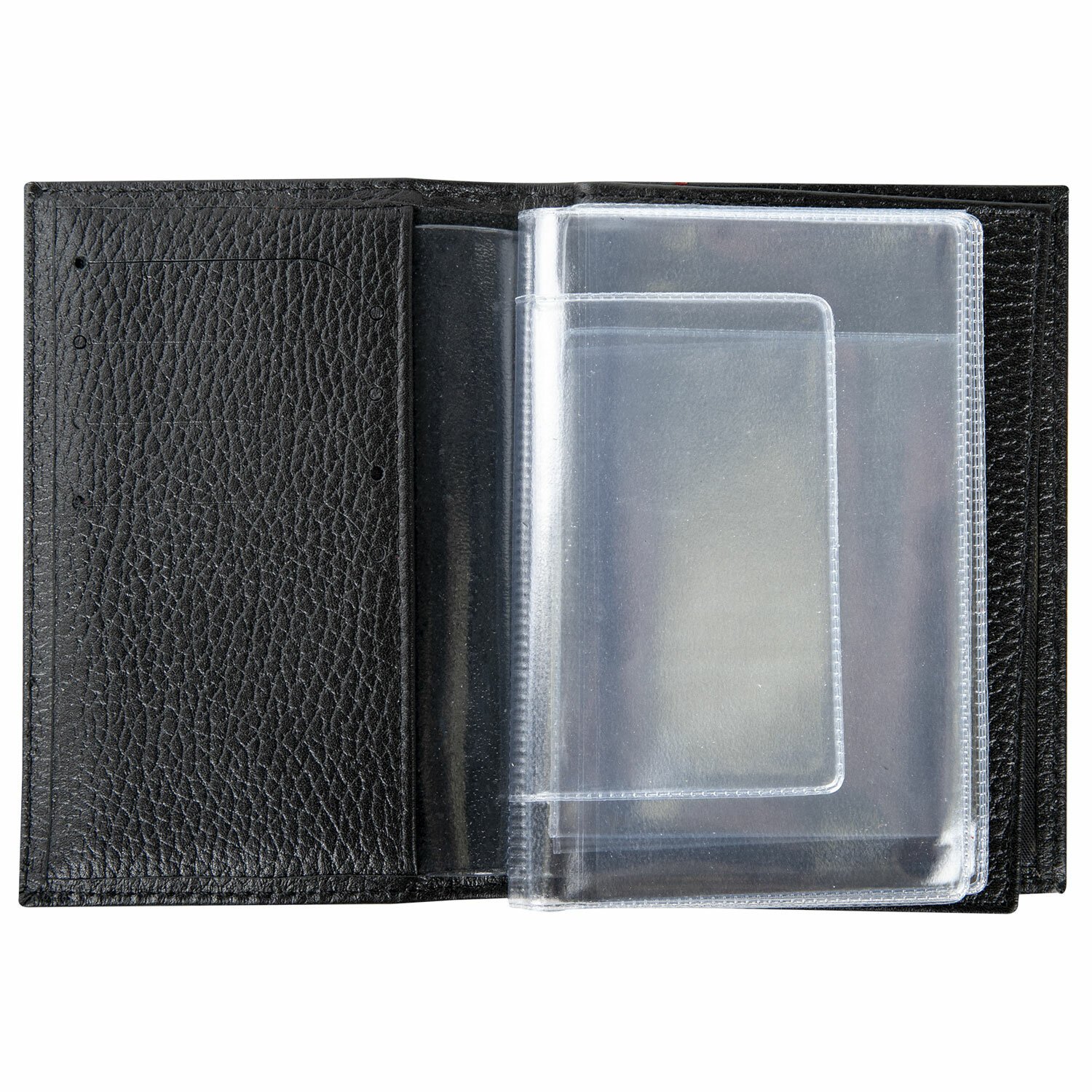 Обложка для автодокументов натуральная кожа кайман, без тиснения, черная, BRAUBERG, 238189