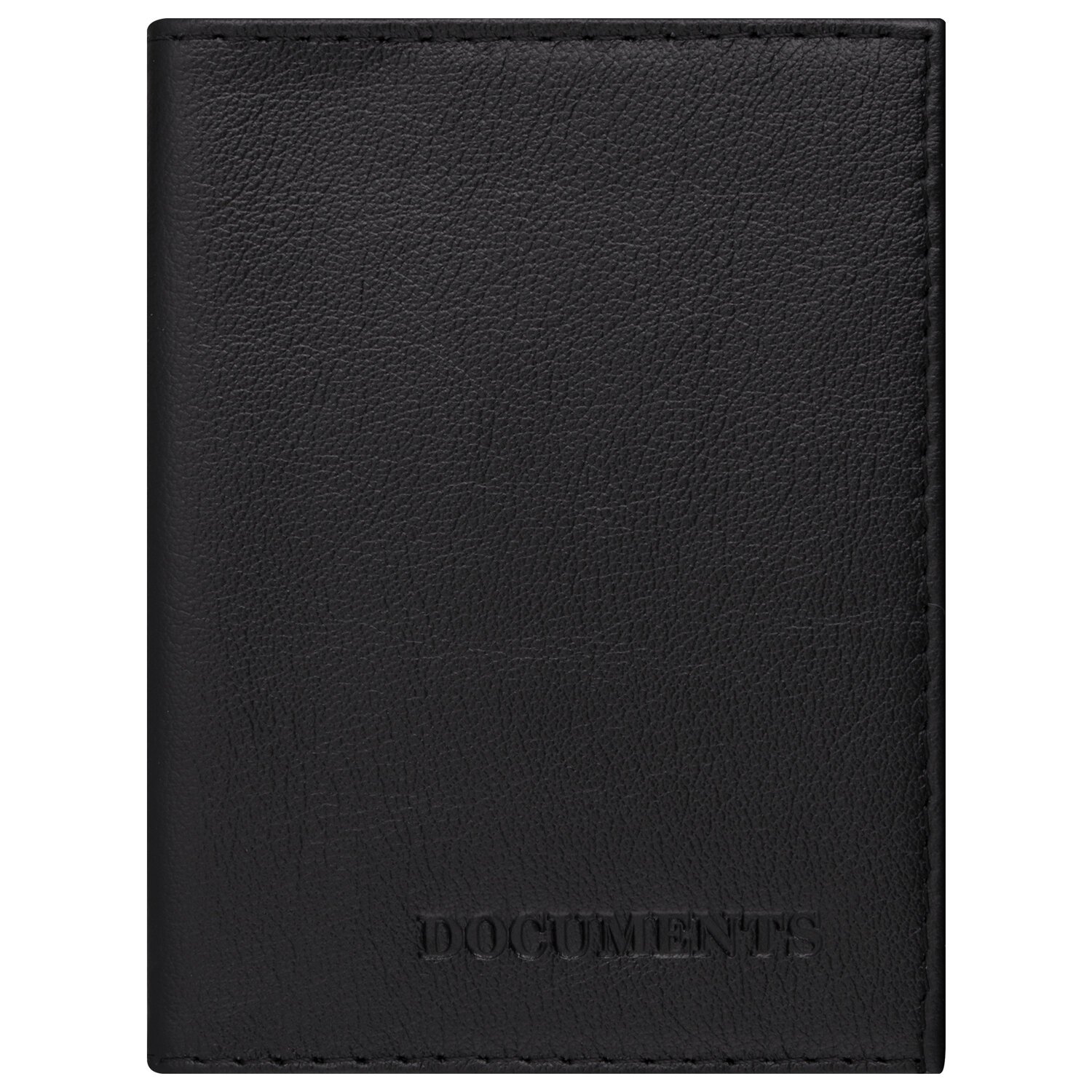 Модель выполнена из натуральной кожи "галант" в черном цвете с надписью "DOCUMENTS". Вмещает в себя 6 пластиковых карманов: 1 файл для водительского удостоверения (60х89 мм), 4 файла размером 80х120 мм (подходят для СТС) и 1 файл для страхового полиса или доверенности формата А5 (150х216 мм) - документ формата А5 подразумевает его складывание пополам лицевой стороной наружу. Дополнительно присутствует карман для пластиковой карты. Компактный размер обложки 95х130 мм позволяет всегда носить с собой нужные автодокументы.